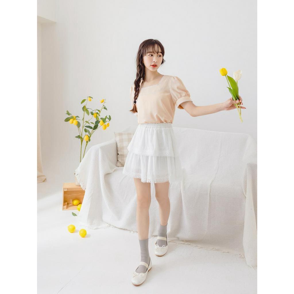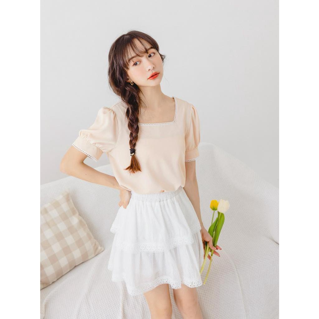 OB嚴選 小V臉.方領舒涼雪紡花邊拋袖上衣 《AB18366》大尺碼/女裝/現貨