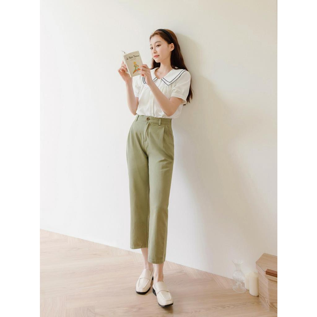OB嚴選 純棉立挺打褶後鬆緊直筒寬褲 《BA4704》大尺碼/女裝/現貨
