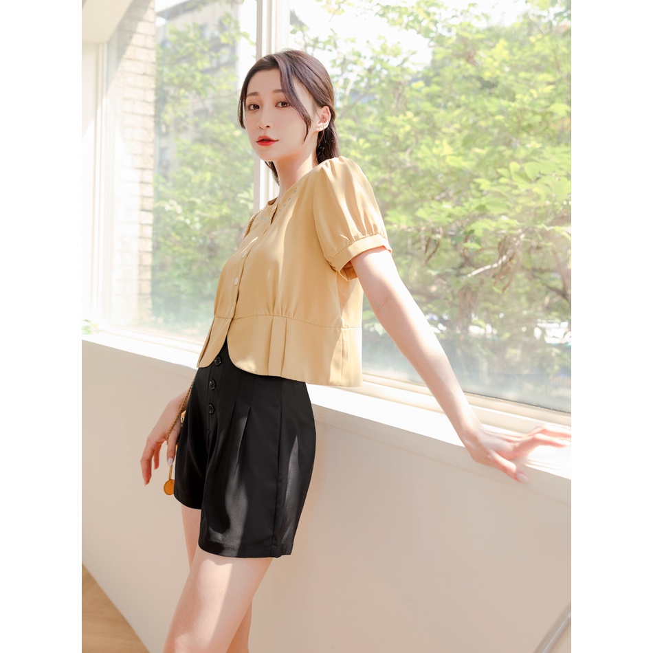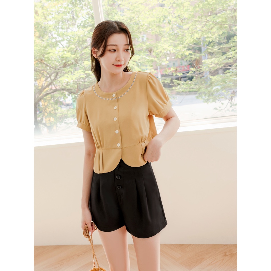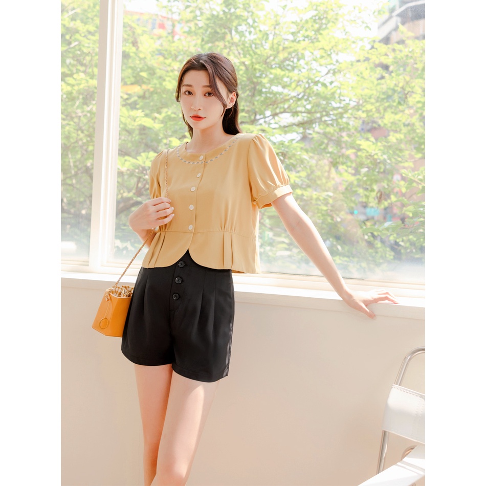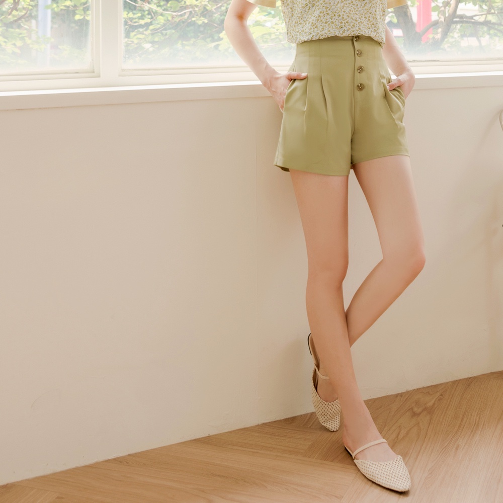 OB嚴選 S小腰精.排釦車褶線不易皺短褲 《BA6819》大尺碼/女裝/現貨