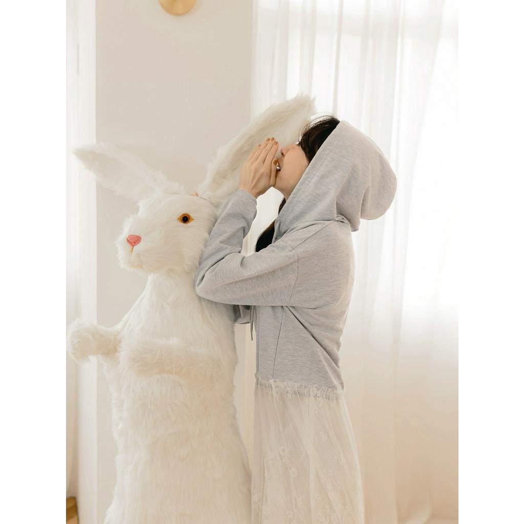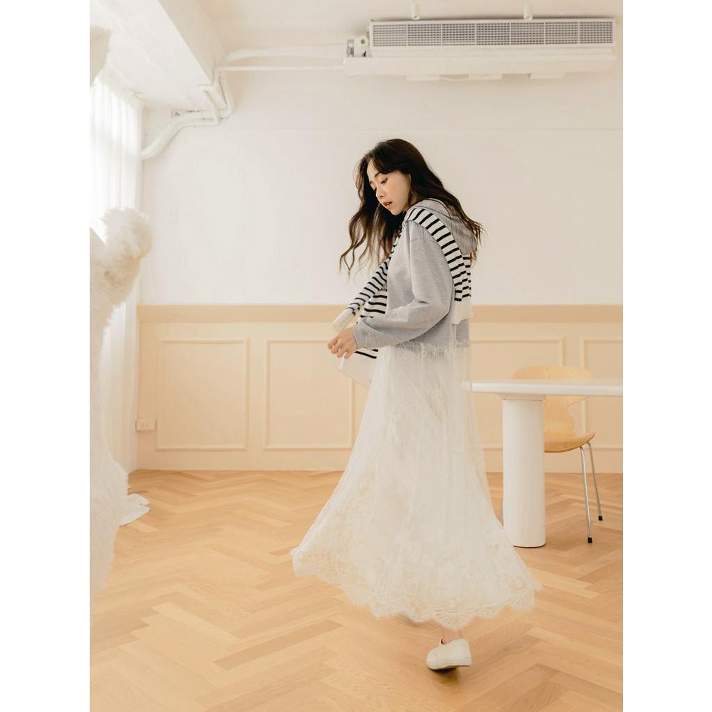 OB嚴選 素色蕾絲拼接連帽長袖長洋裝 《DA9591》大尺碼/女裝/現貨