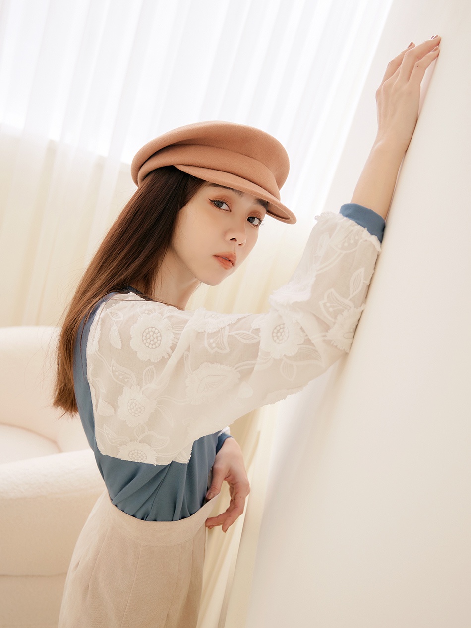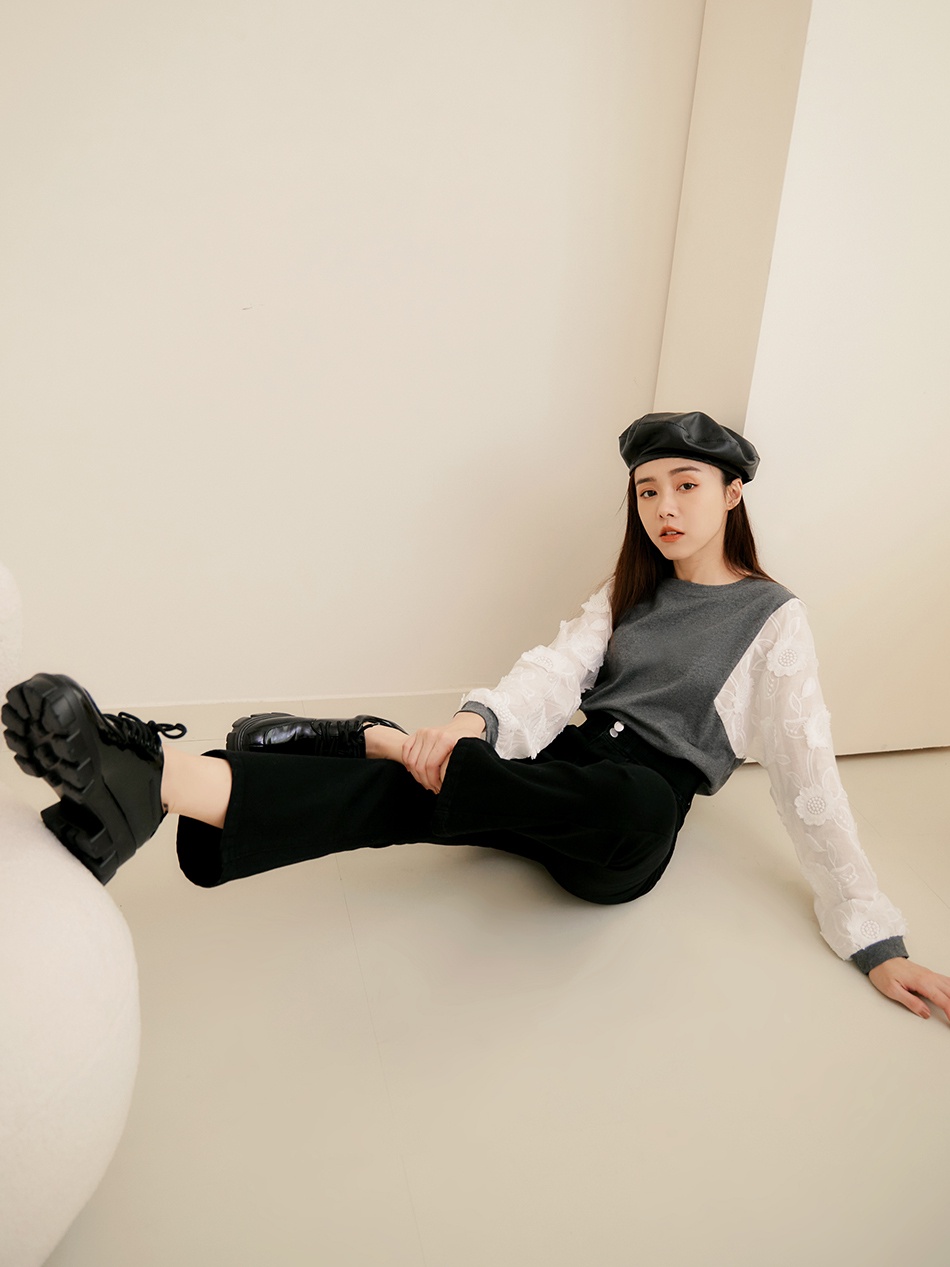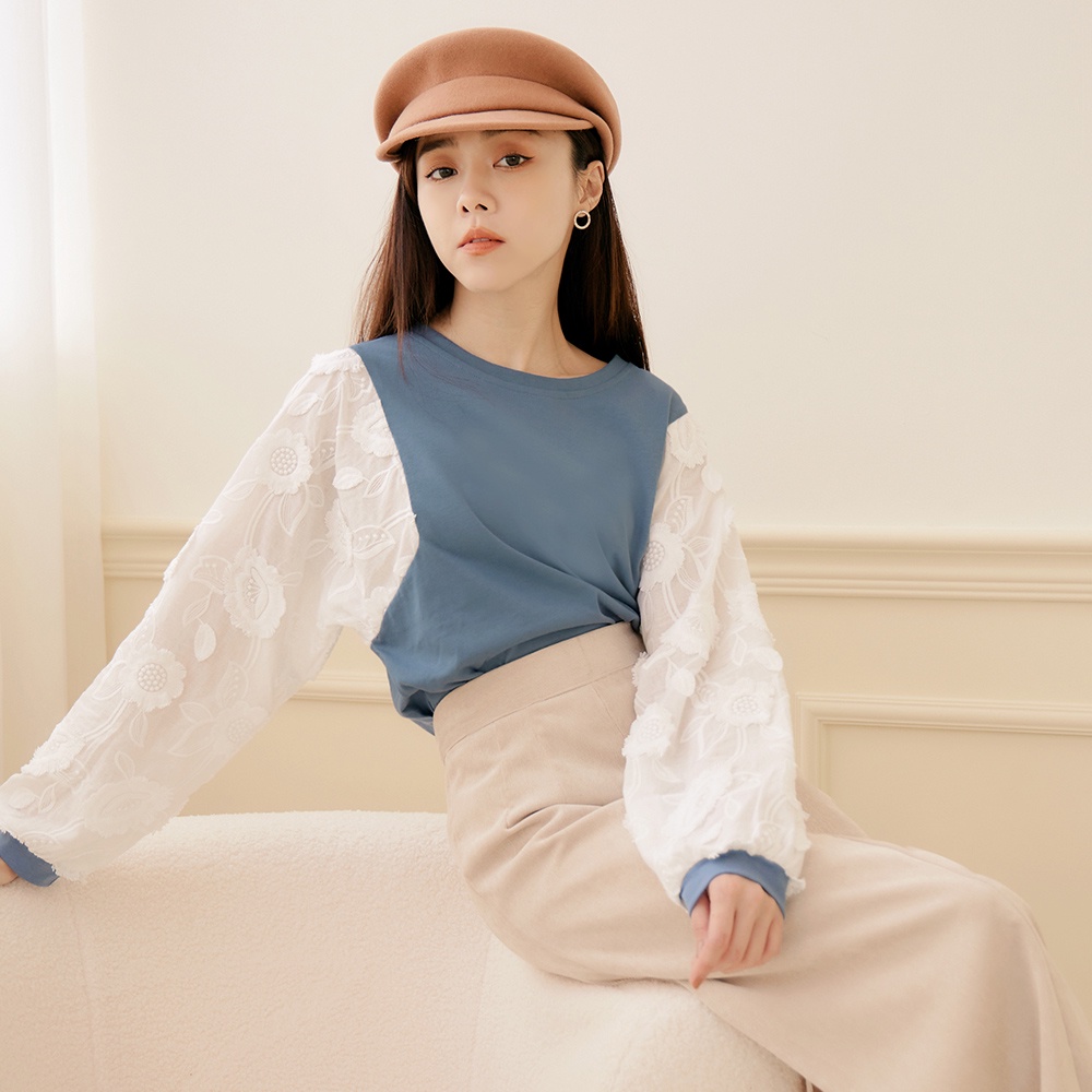 OB嚴選 舒適高含棉立體蕾絲拼接澎袖上衣 《AB17729》大尺碼/女裝/現貨