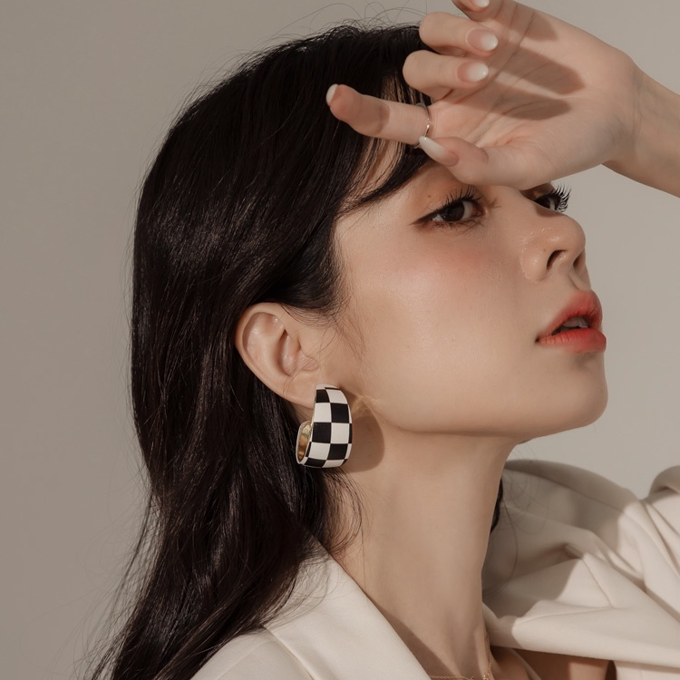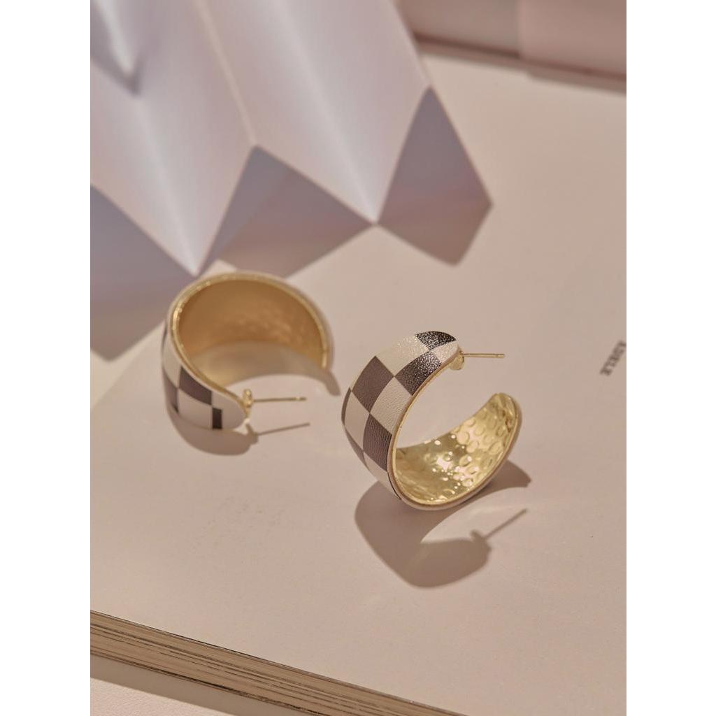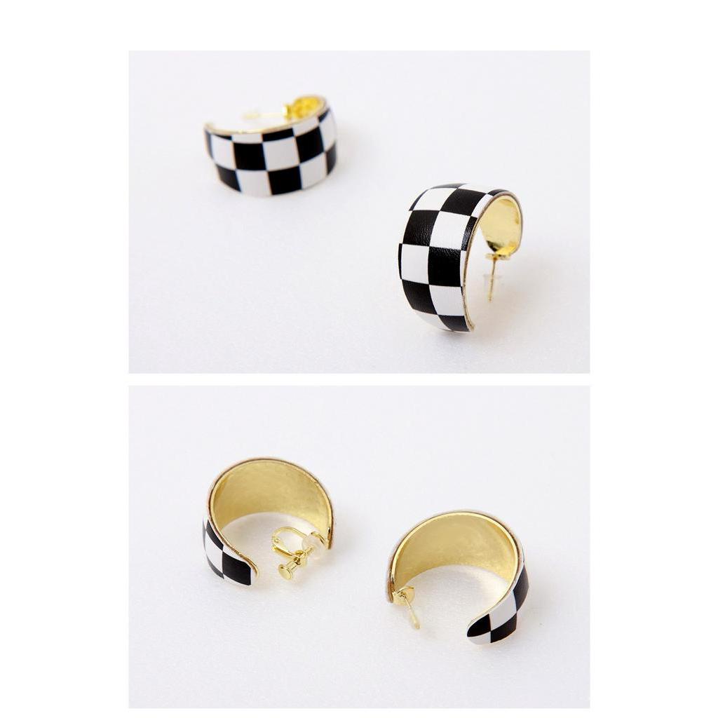 OB嚴選 復古黑白格紋皮革大圈圈耳環 《XA278》現貨/飾品/韓系