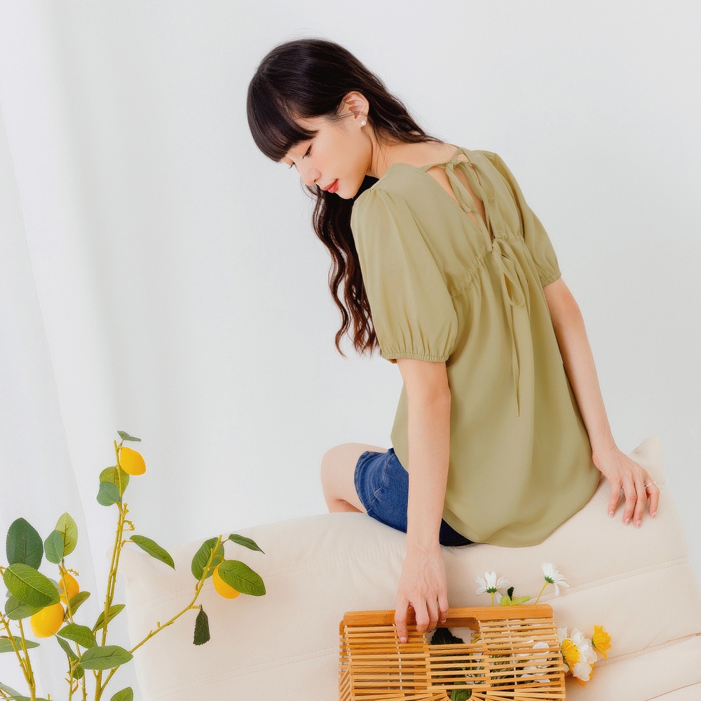 OB嚴選 小露背後綁帶拋袖A字長版上衣 《AB17319》大尺碼/女裝/現貨