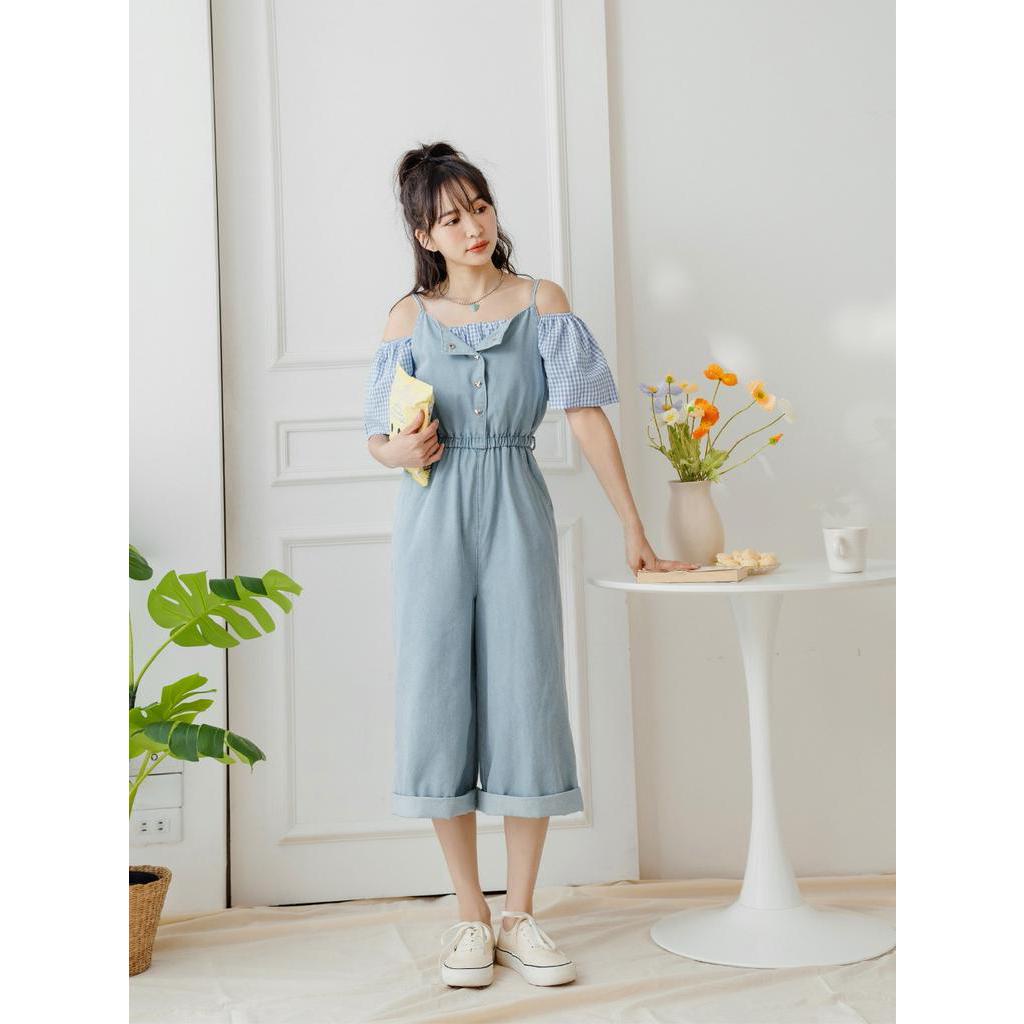OB嚴選 牛仔愛心釦肩帶連身寬褲 《BA7190》大尺碼/女裝/現貨