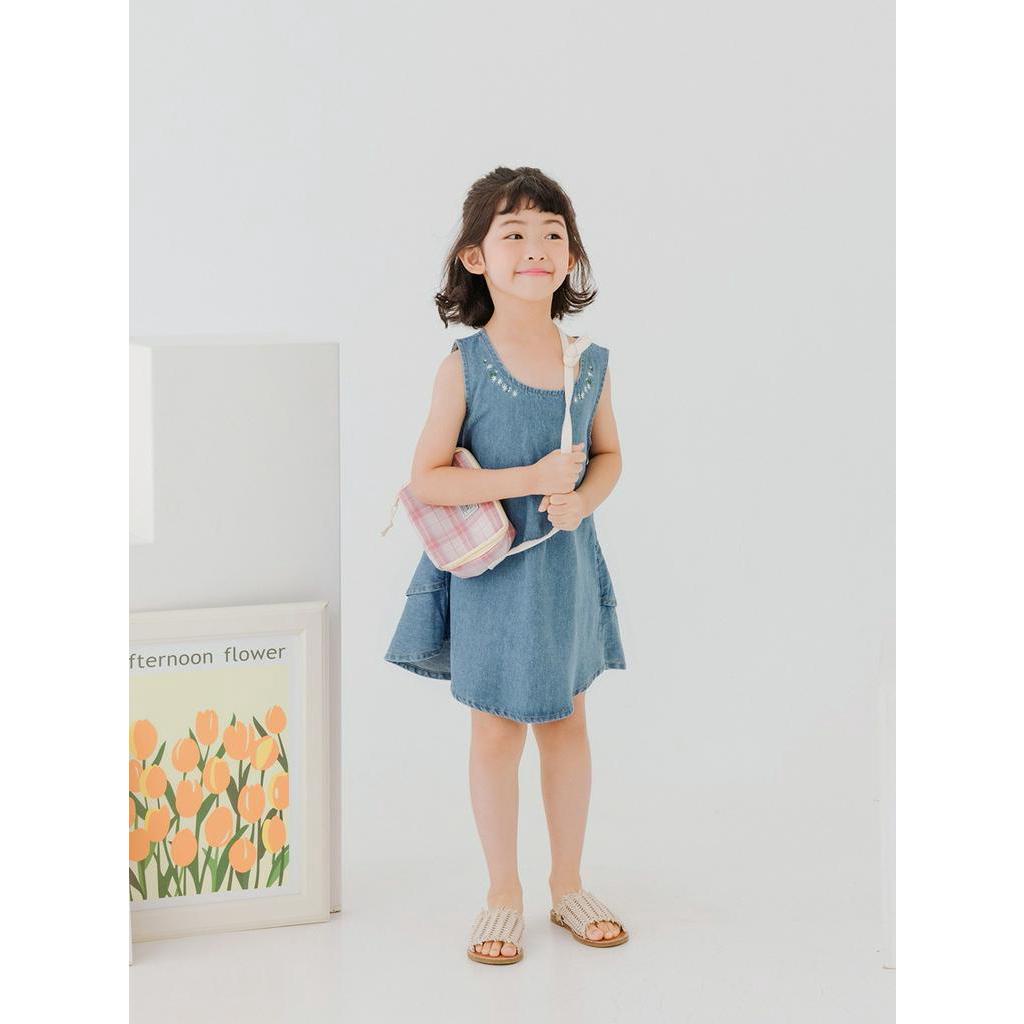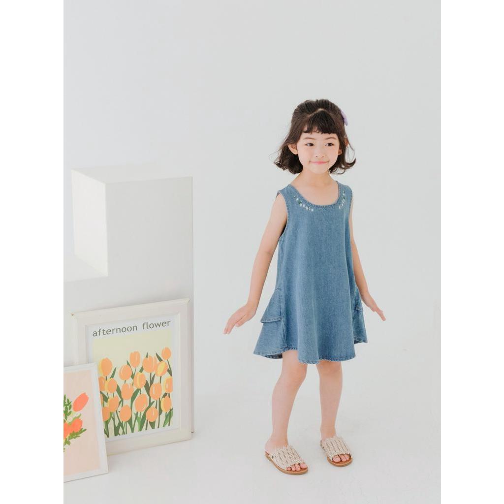 OB嚴選 清新繡花後荷葉雙層拼接牛仔背心洋裝 《QA1412》童裝/現貨