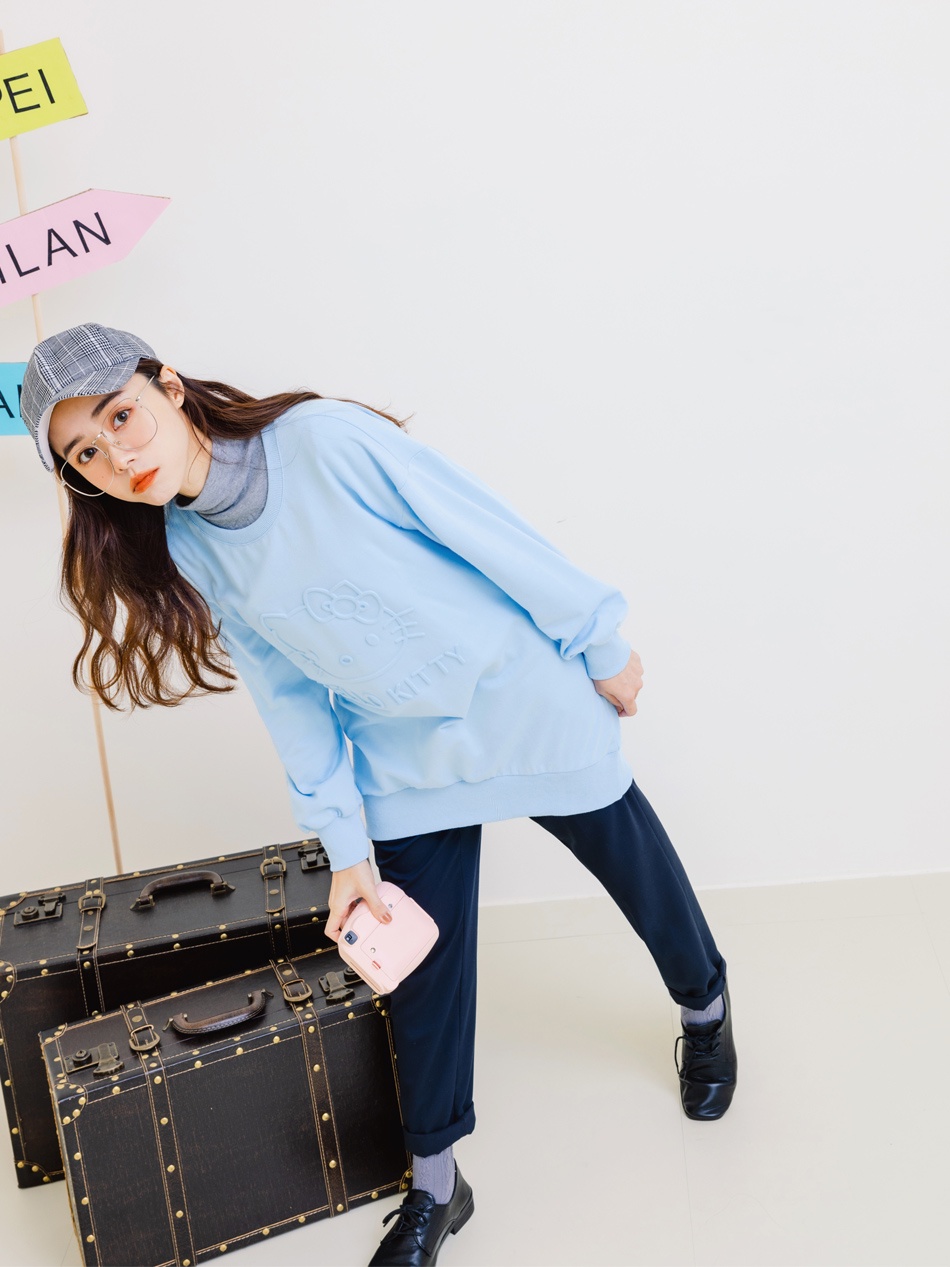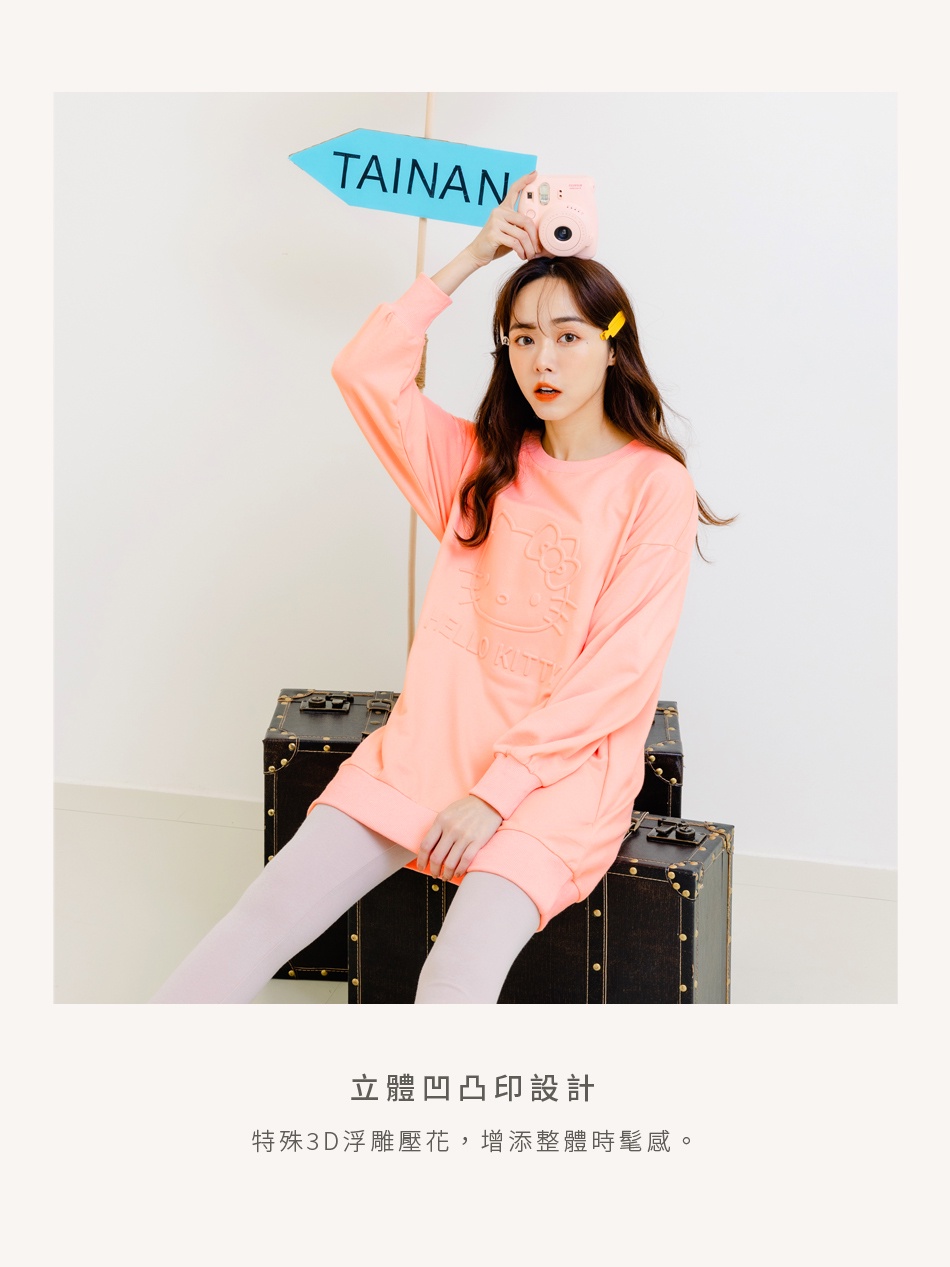OB嚴選 玩轉百tee.KITTY環島台灣凹凸印前短後長衛衣 《KB1444》大尺碼/女裝/現貨