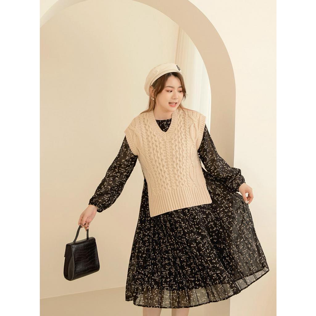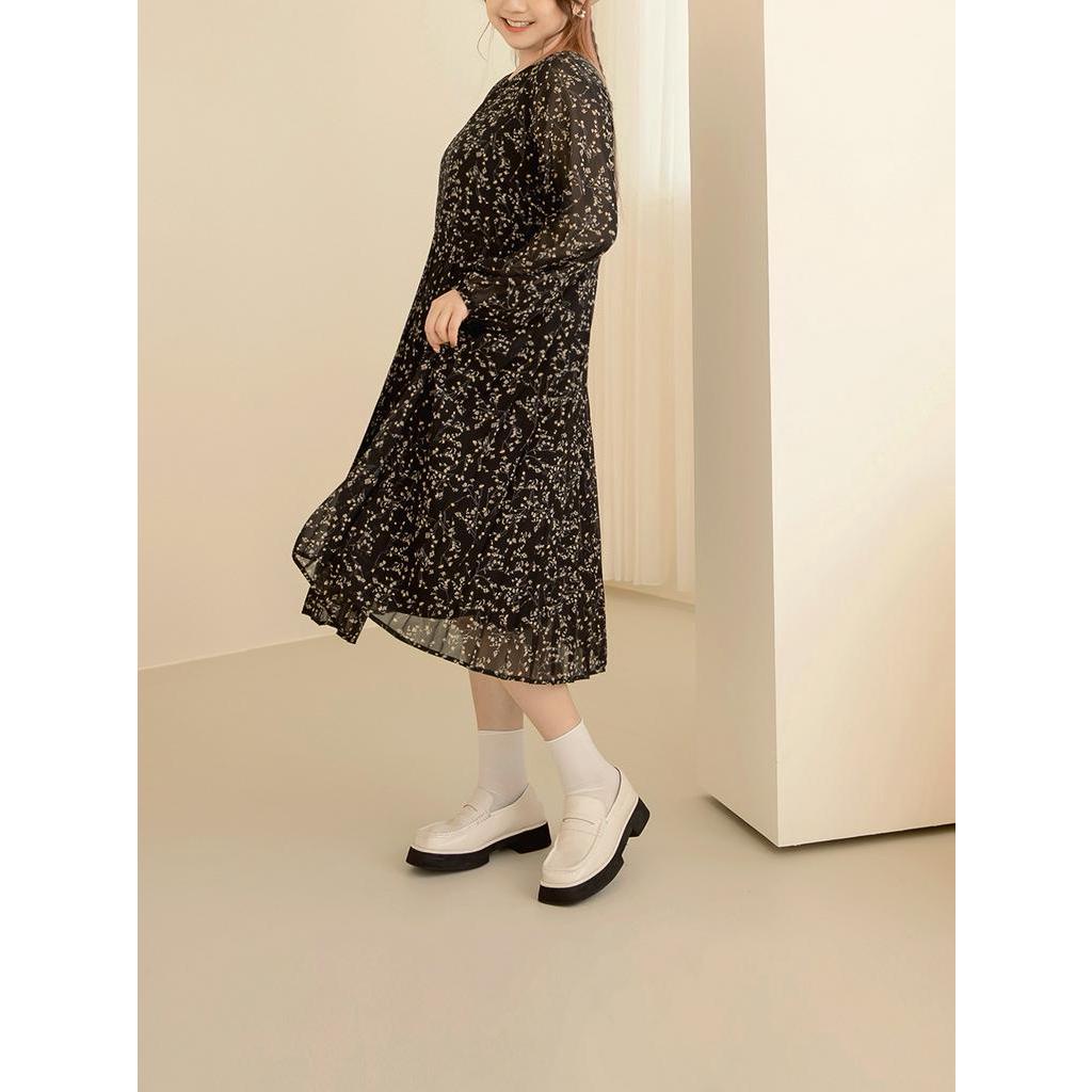OB嚴選 雲朵自訂款-法式優雅印花透膚雪紡百褶洋裝 《DA9453》大尺碼/女裝/現貨