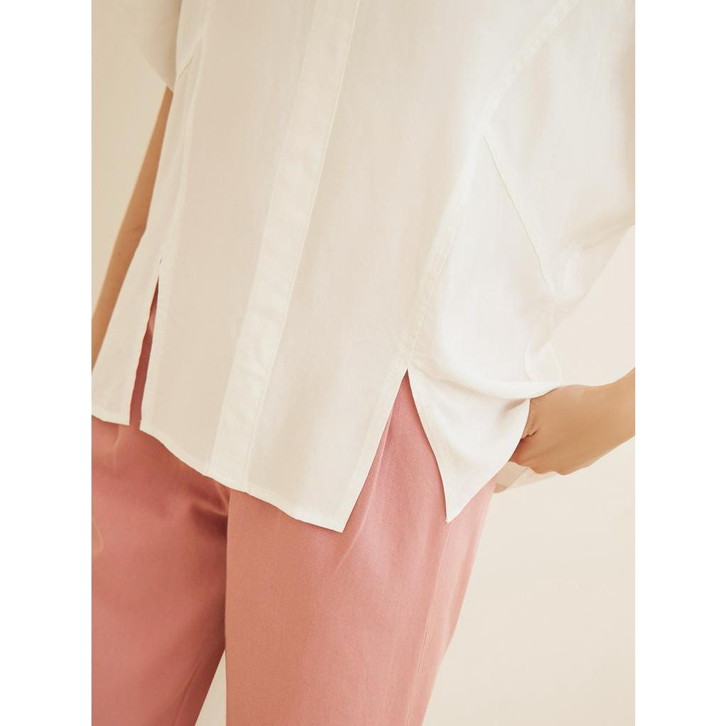 OB嚴選 柔滑素色袖銀釦造型下襬襯衫 《AB18681》大尺碼/女裝/現貨