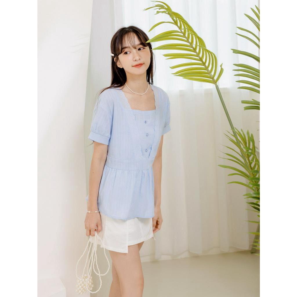 OB嚴選 小V臉.蕾絲方領純棉A字上衣 《AB18675》大尺碼/女裝/現貨