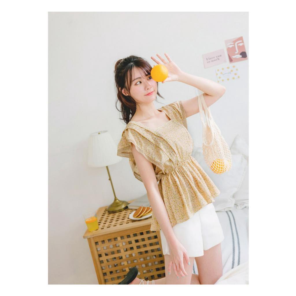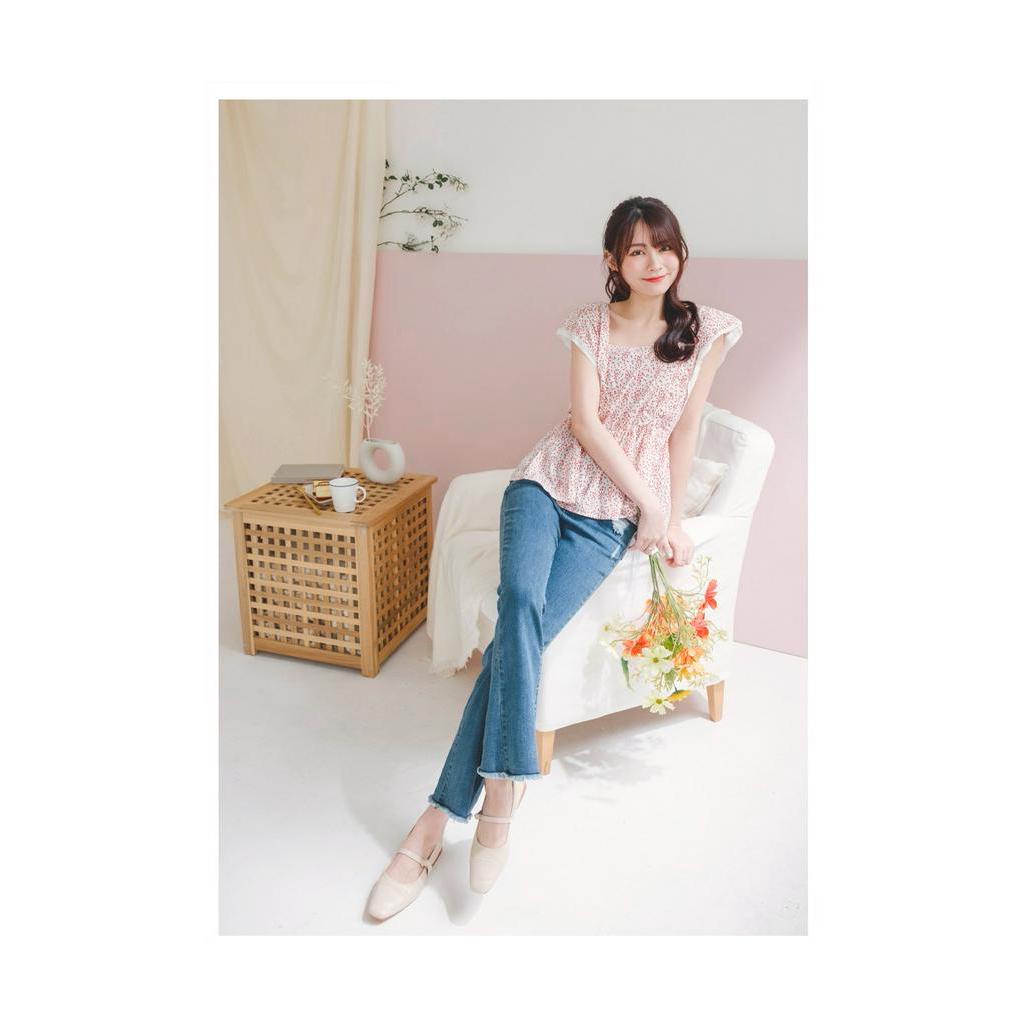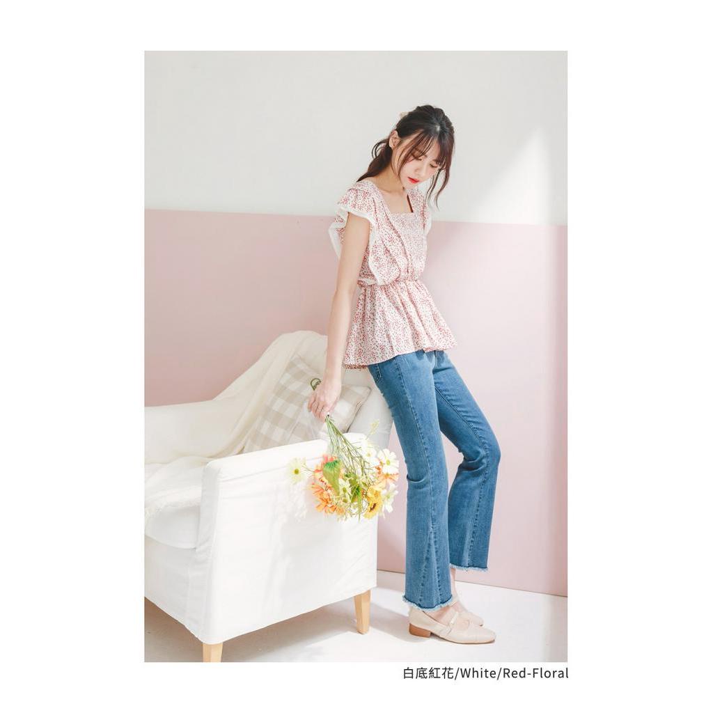 OB嚴選 小V臉.方領小花蕾絲邊後綁帶縮腰上衣 《AB15684》大尺碼/女裝/現貨