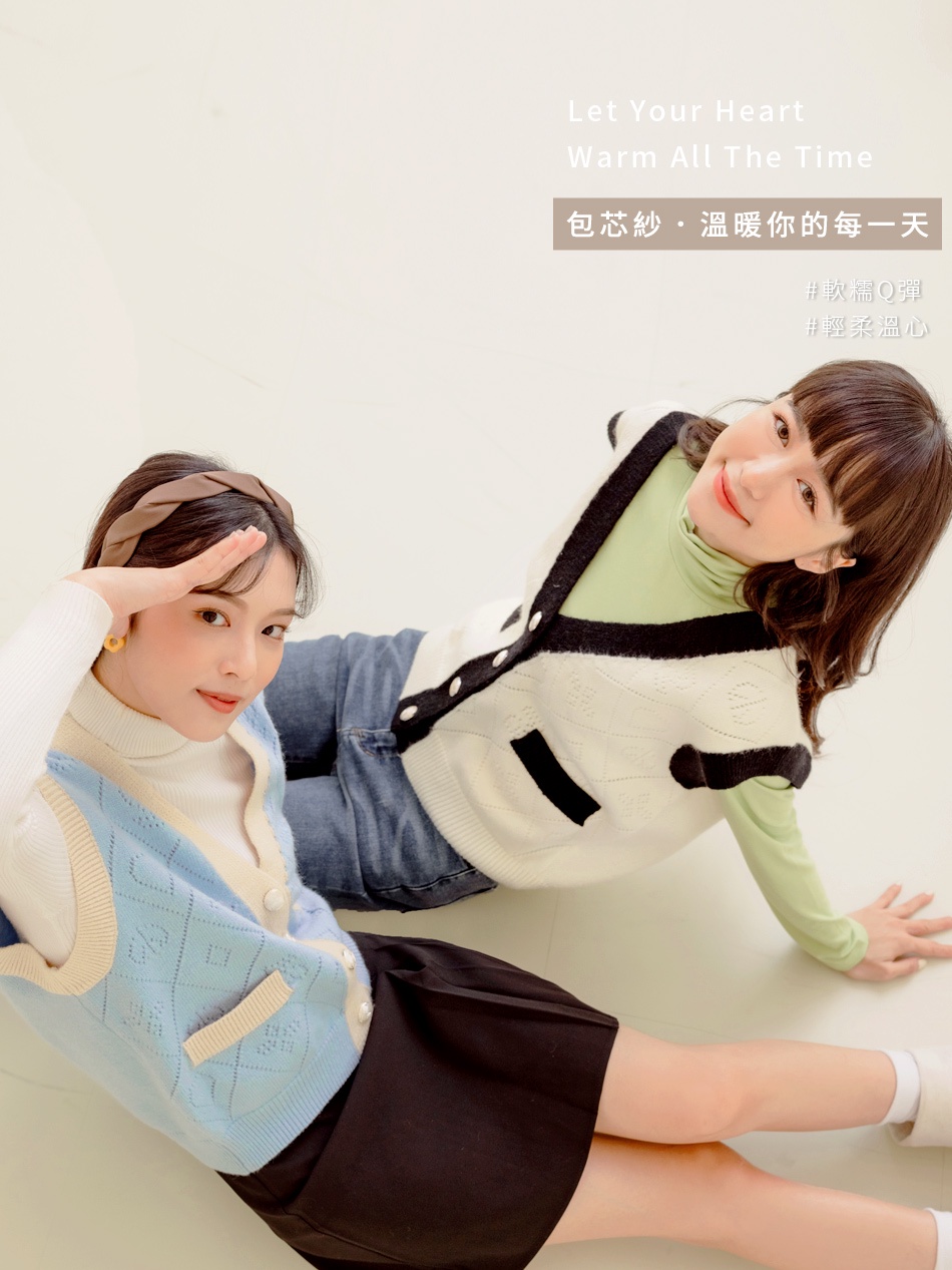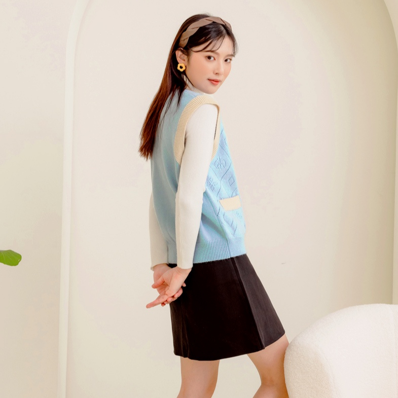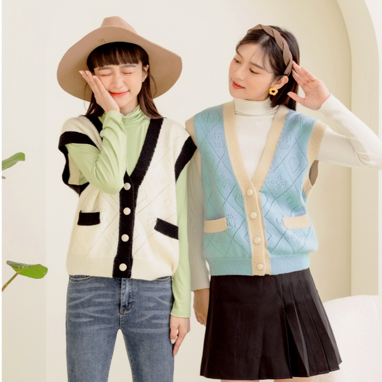 OB嚴選 撞色V領清甜織紋口袋QQ毛衣背心 《FA2648》大尺碼/女裝/現貨