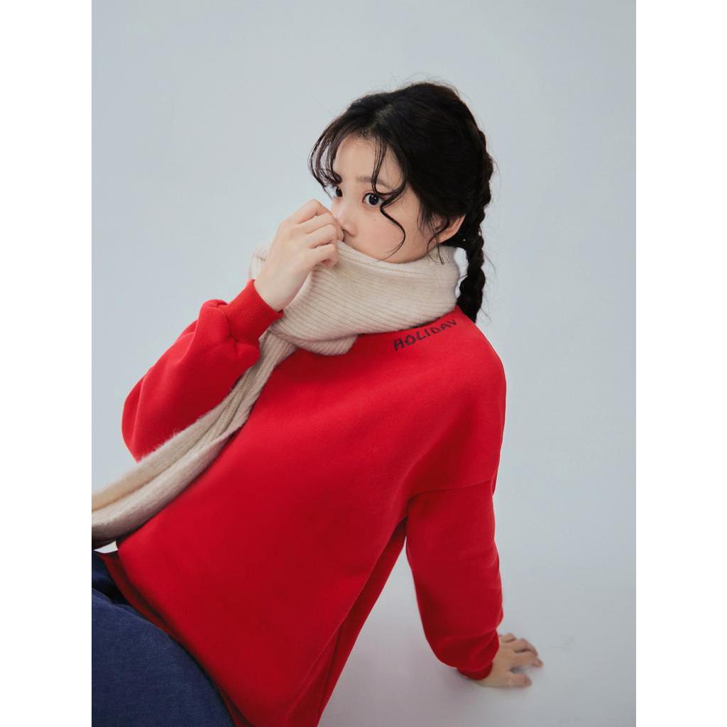 OB嚴選 純色簡約英文刺繡內刷毛大學T 《KG1506》大尺碼/女裝/現貨