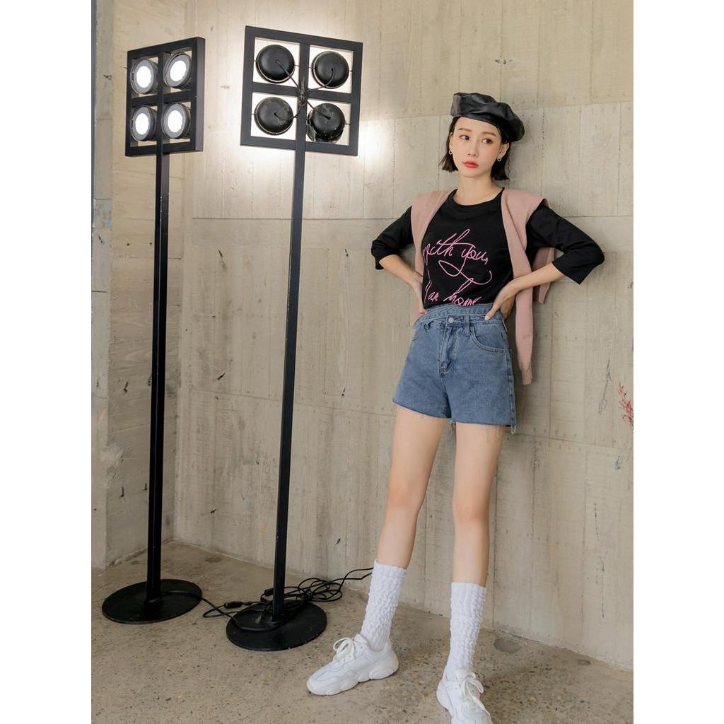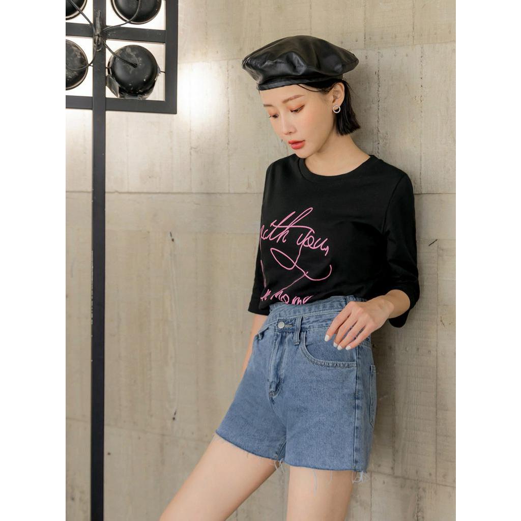 OB嚴選 高含棉不對稱下襬撞色英文印花上衣T 《AB17532》大尺碼/女裝/現貨