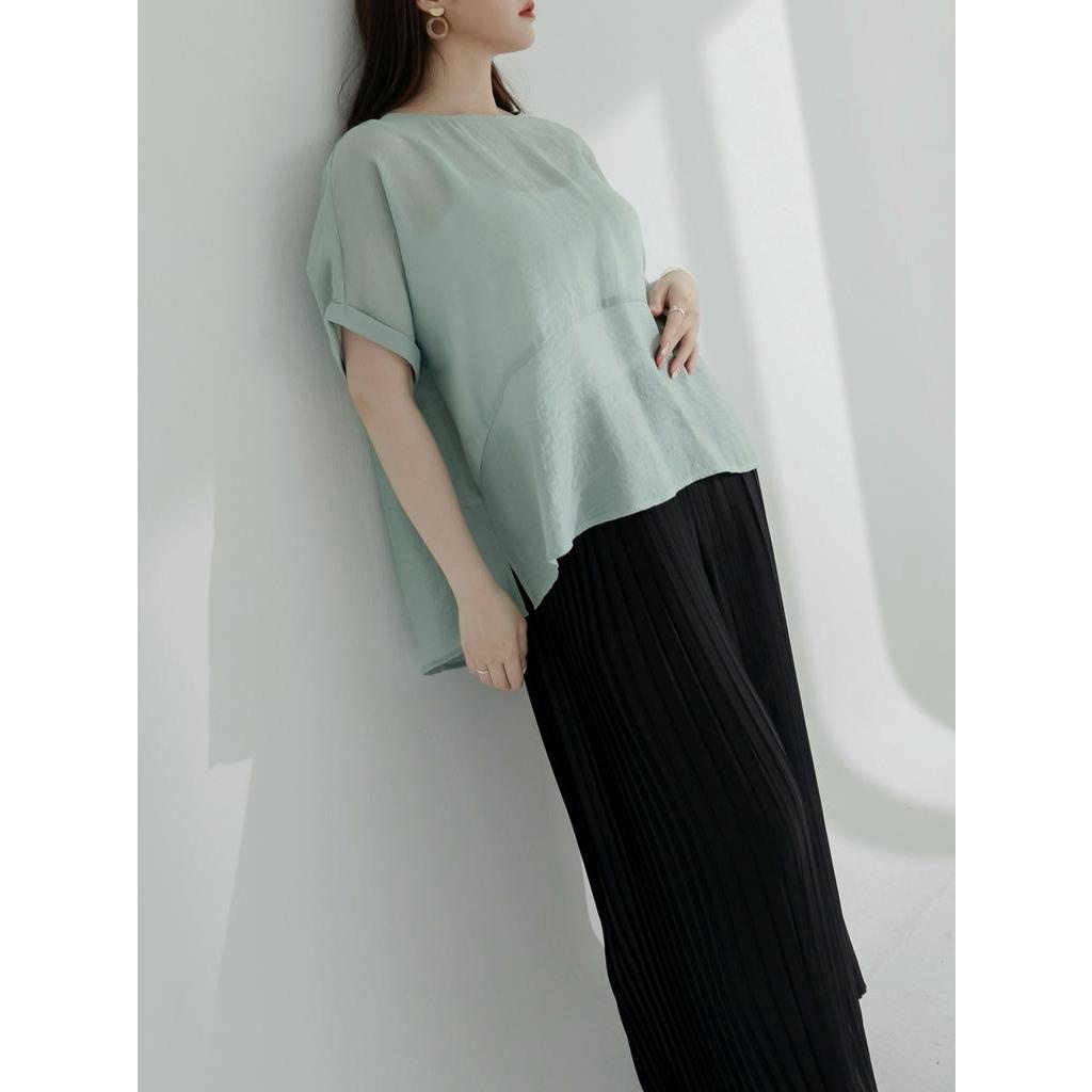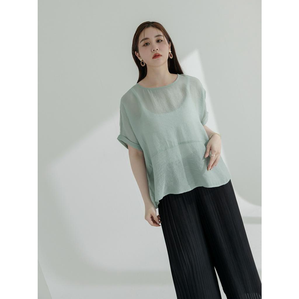 OB嚴選 雲朵自訂款-光澤微透膚反折袖開衩上衣 《AB18524》大尺碼/女裝/現貨