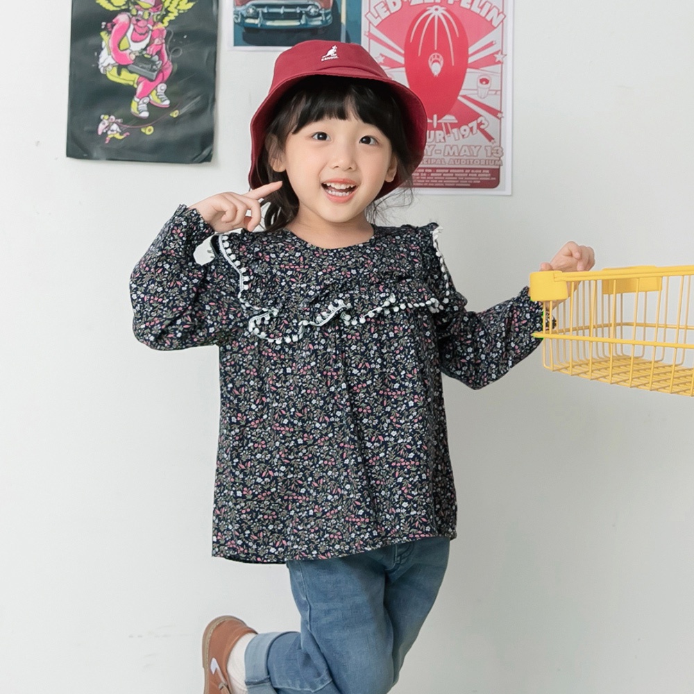 OB嚴選 荷葉拼接流蘇後領開襟碎花純棉上衣 《QA1313》童裝/現貨