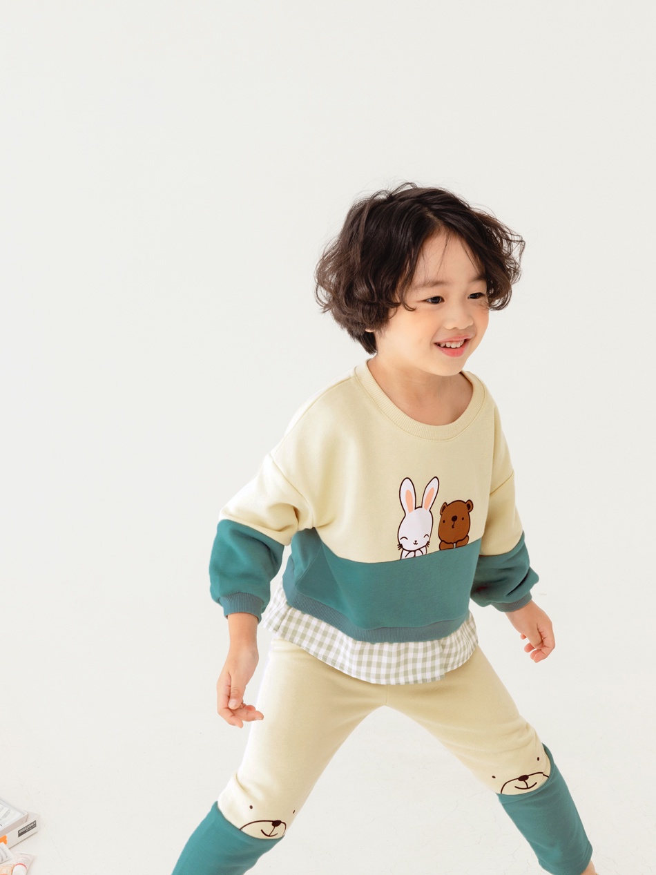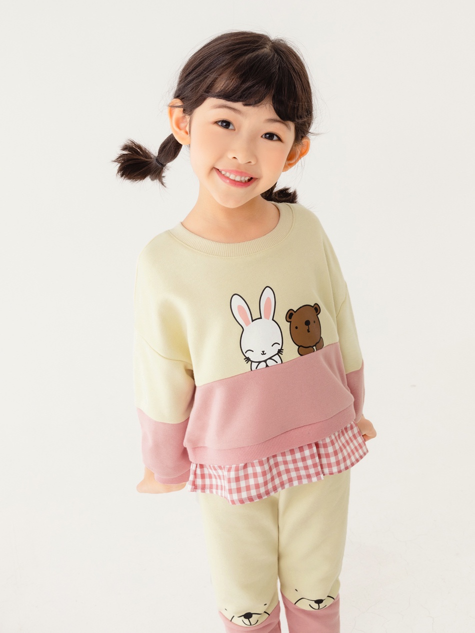 OB嚴選 可愛熊熊兔兔色塊拼接格紋長袖上衣 《QA1524》童裝/現貨