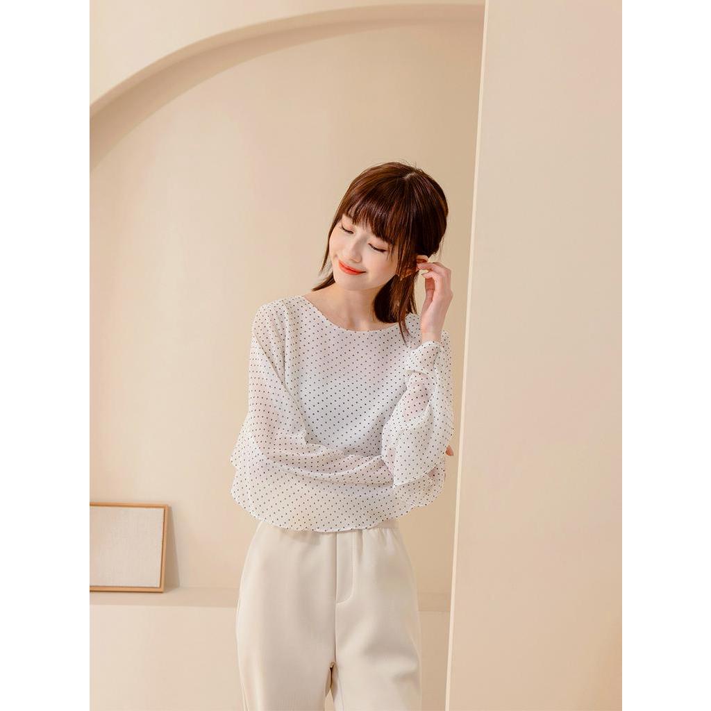 OB嚴選 唯美浪漫雪紡圓點點透膚波浪長袖上衣 《AB16157》大尺碼/女裝/現貨