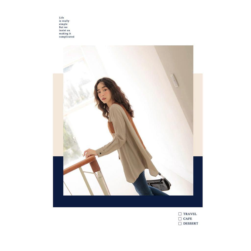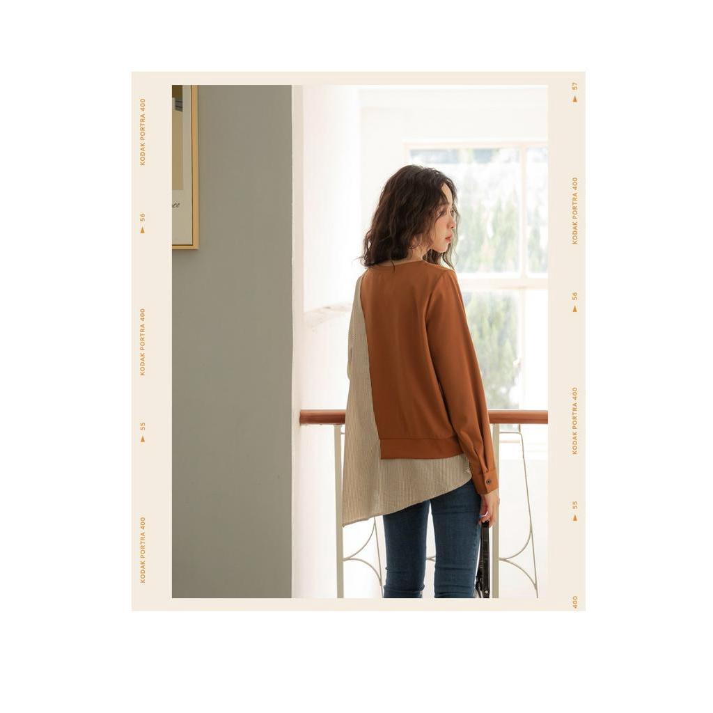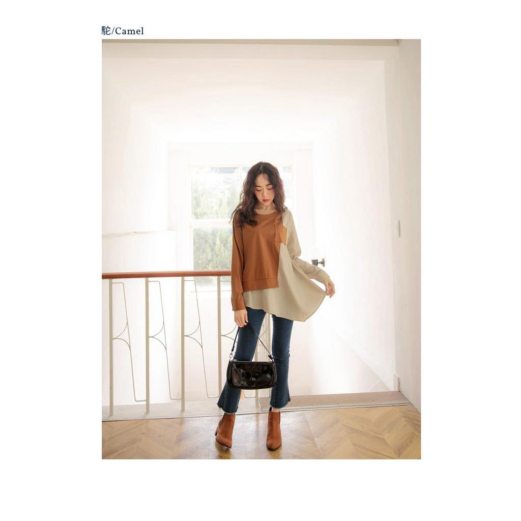 OB嚴選 休閒長版條紋配色拼接長袖上衣 《AB14247》大尺碼/女裝/現貨