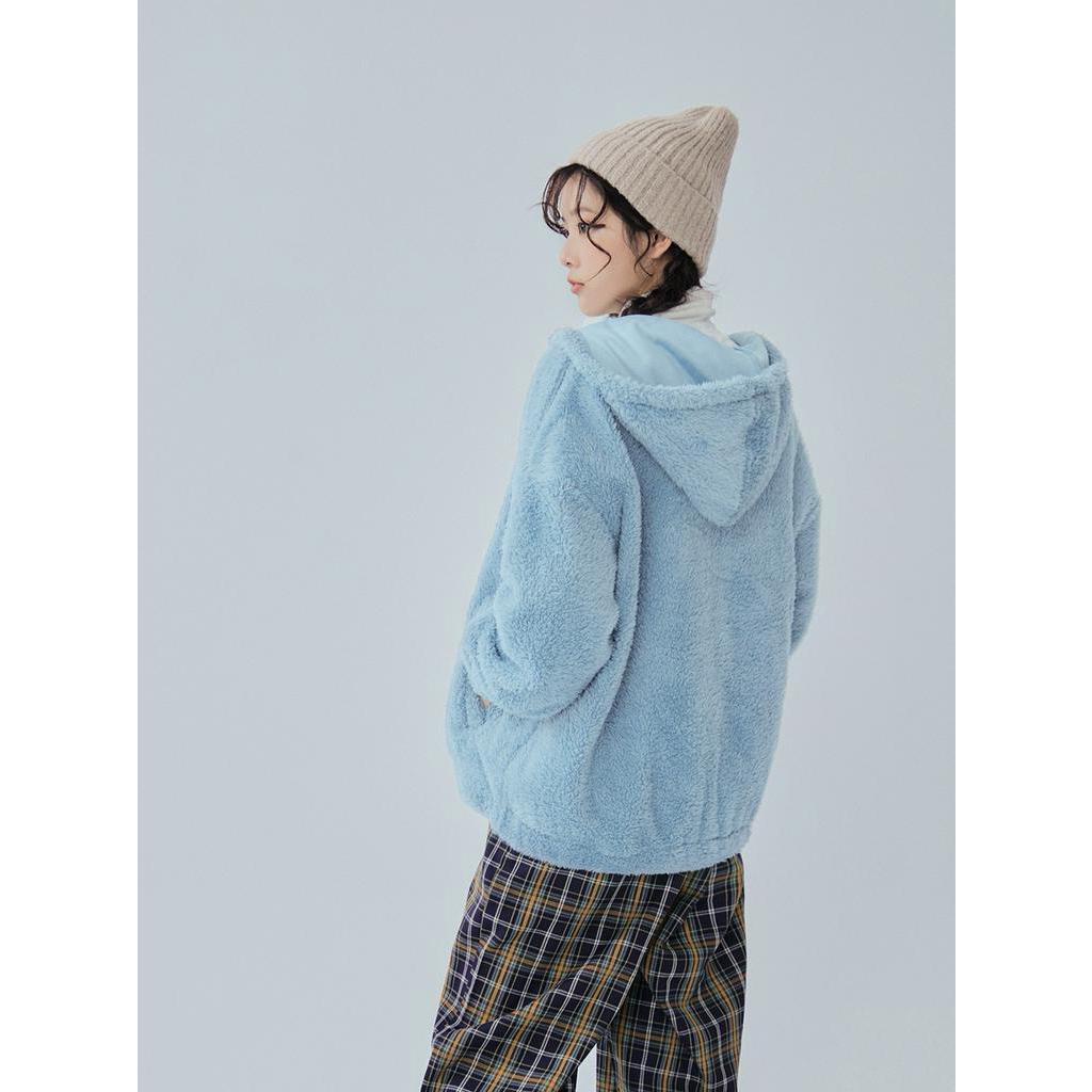 OB嚴選 柔軟絨毛織標設計口袋連帽外套 《KG1534》大尺碼/女裝/現貨