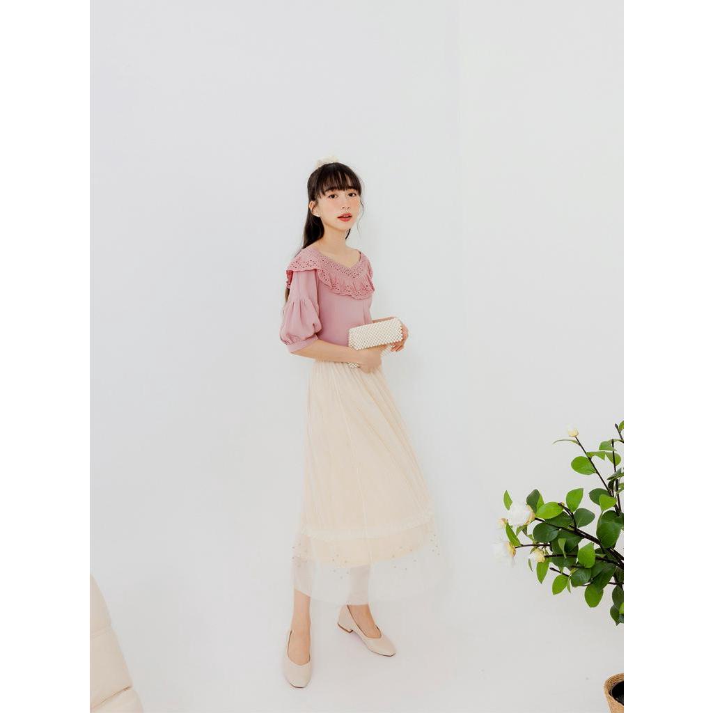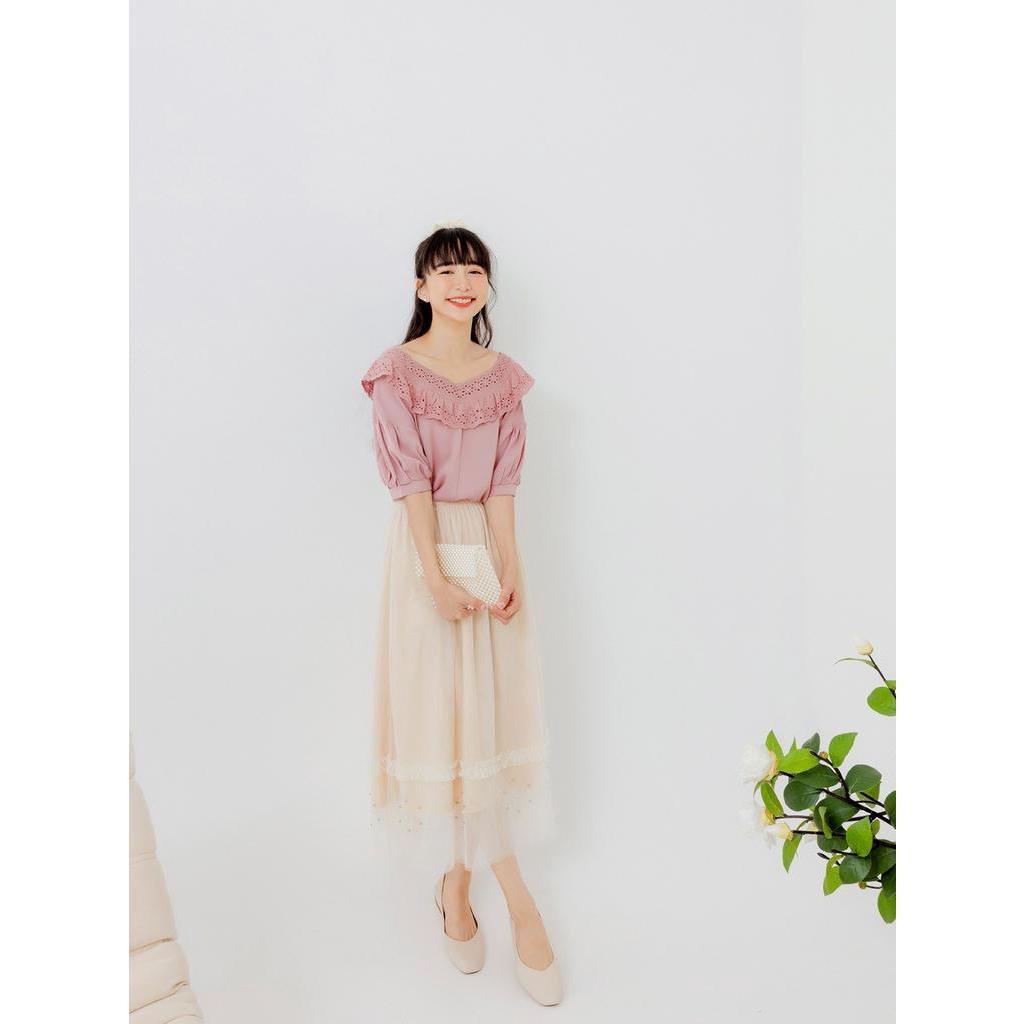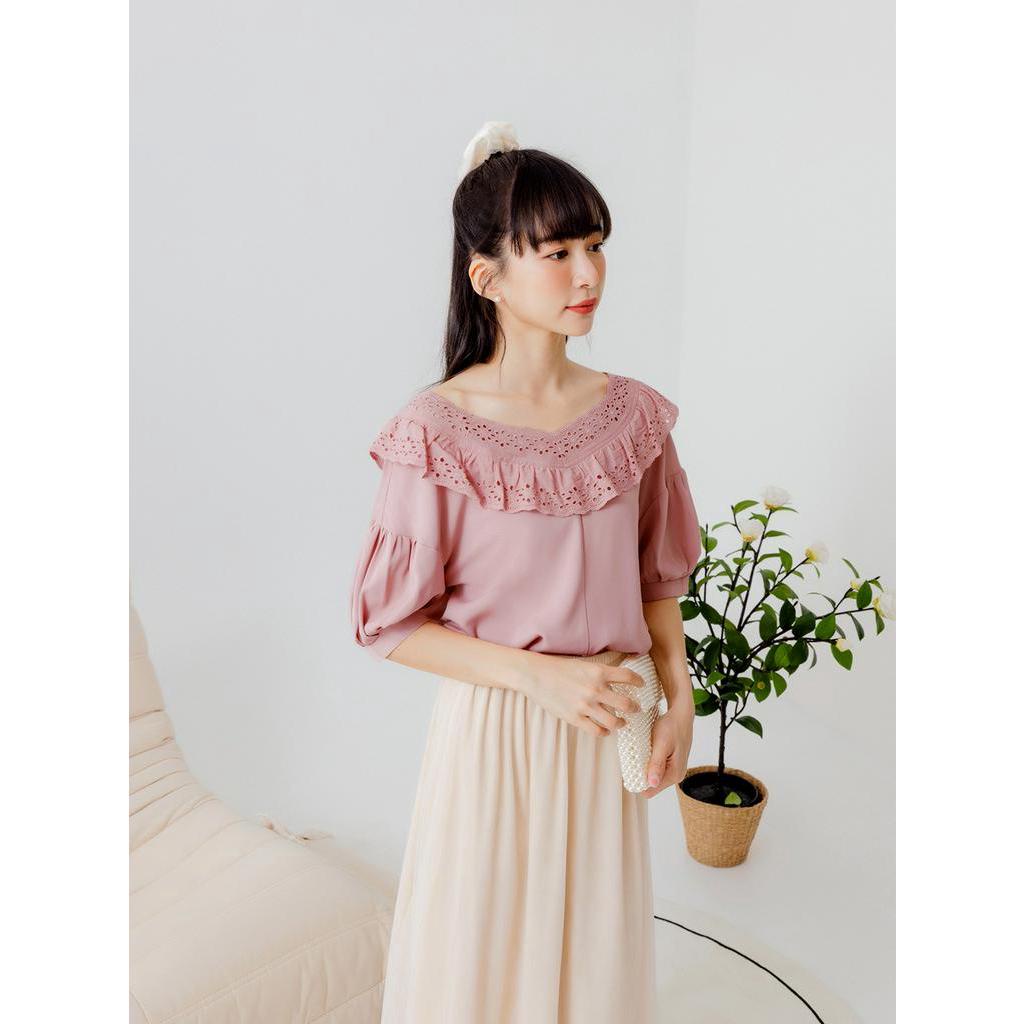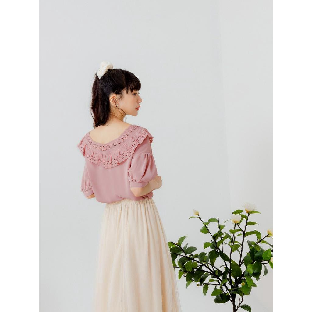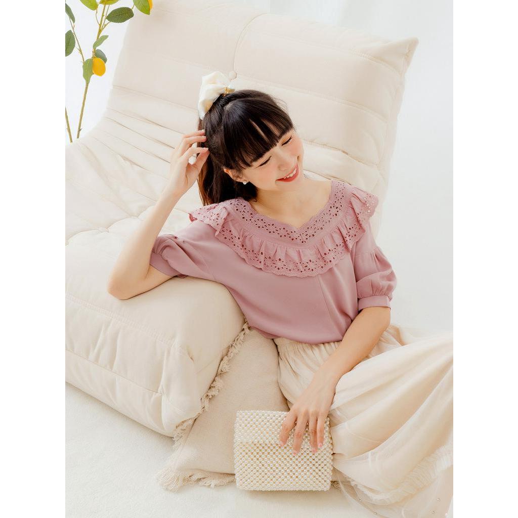OB嚴選 涼感.舒涼雪紡桃心領蕾絲上衣 《AB17324》大尺碼/女裝/現貨