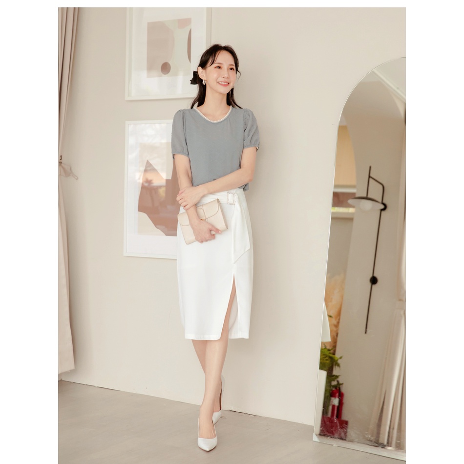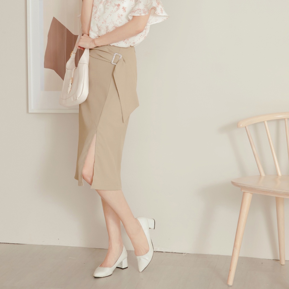 OB嚴選 腰帶造型側開衩不易皺中長裙 《CA2587》大尺碼/女裝/現貨