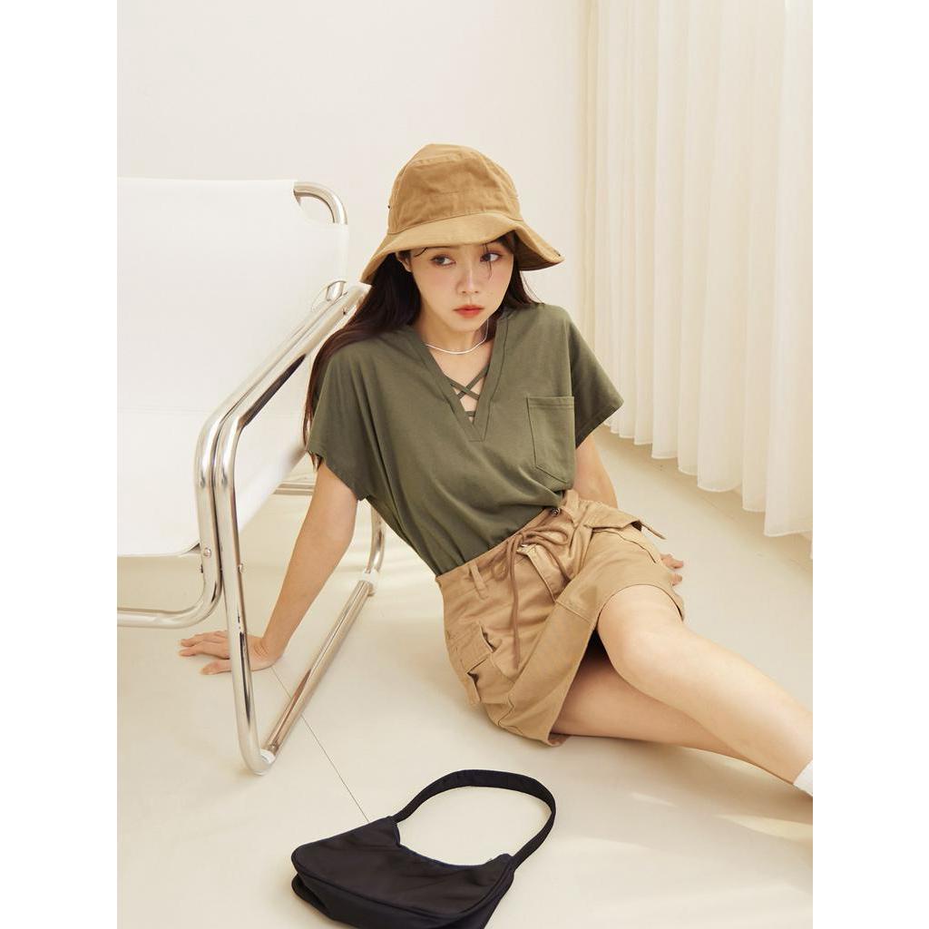 OB嚴選 純棉素色交叉V領圓弧下襬短袖上衣 《AB18726》大尺碼/女裝/現貨