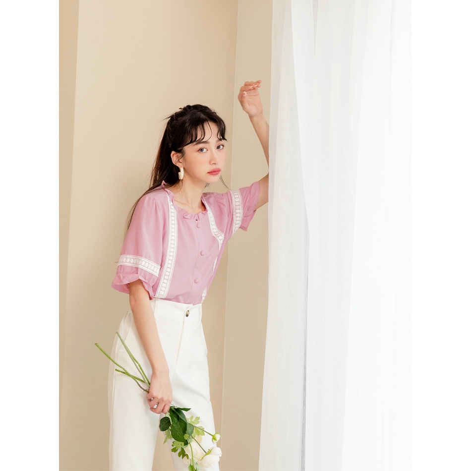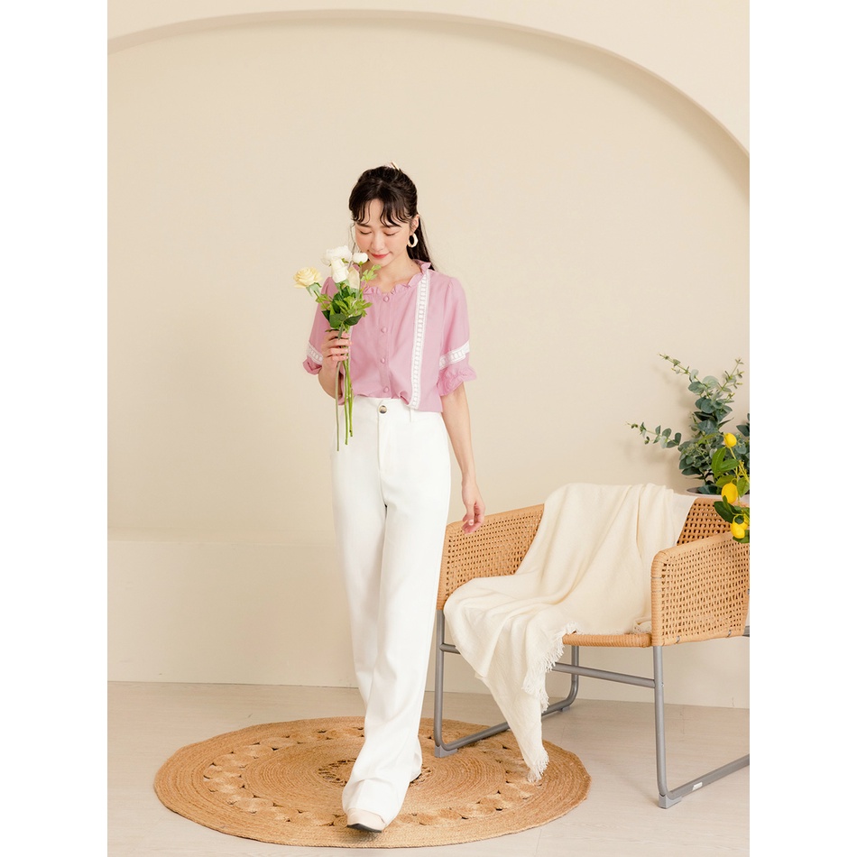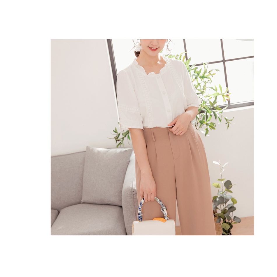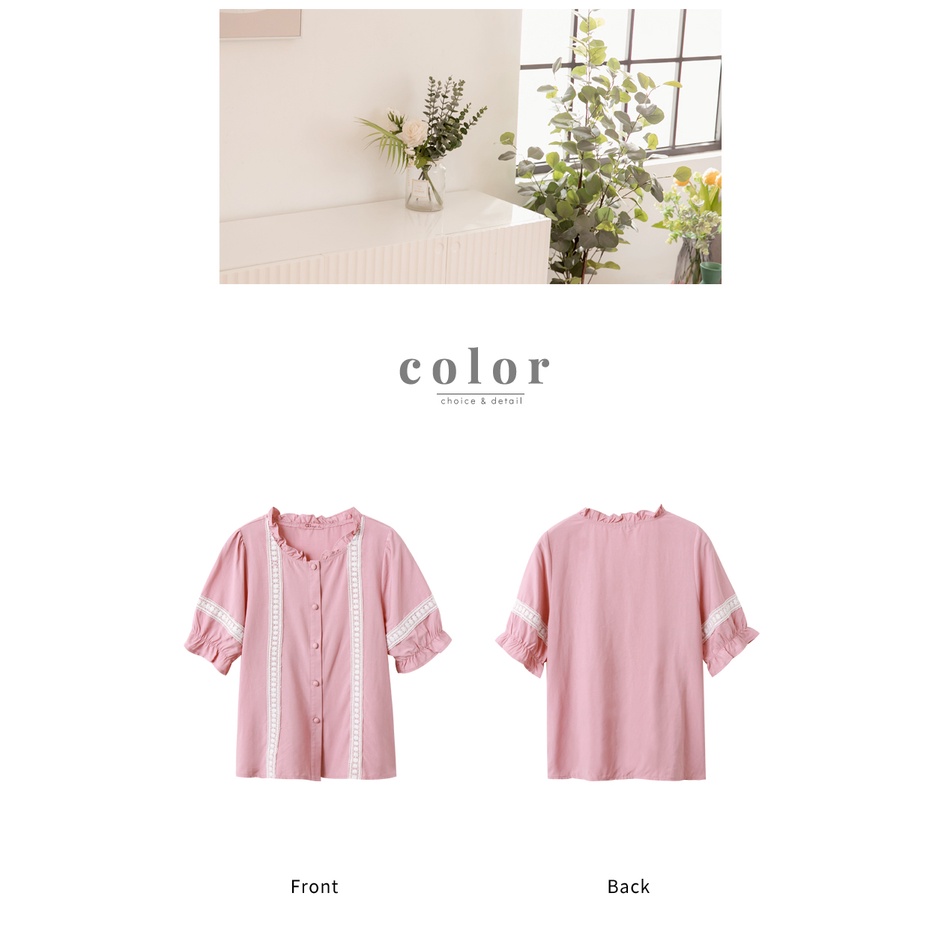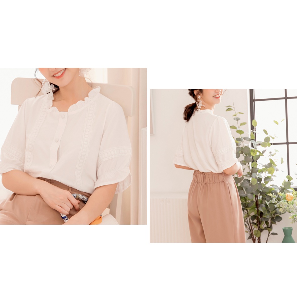 OB嚴選 涼感甜美蕾絲滾邊五分袖襯衫上衣 《AB15290》大尺碼/女裝/現貨