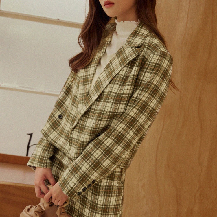 OB嚴選 復古格紋毛呢短版西裝外套 《EA3564》女裝/現貨/時髦