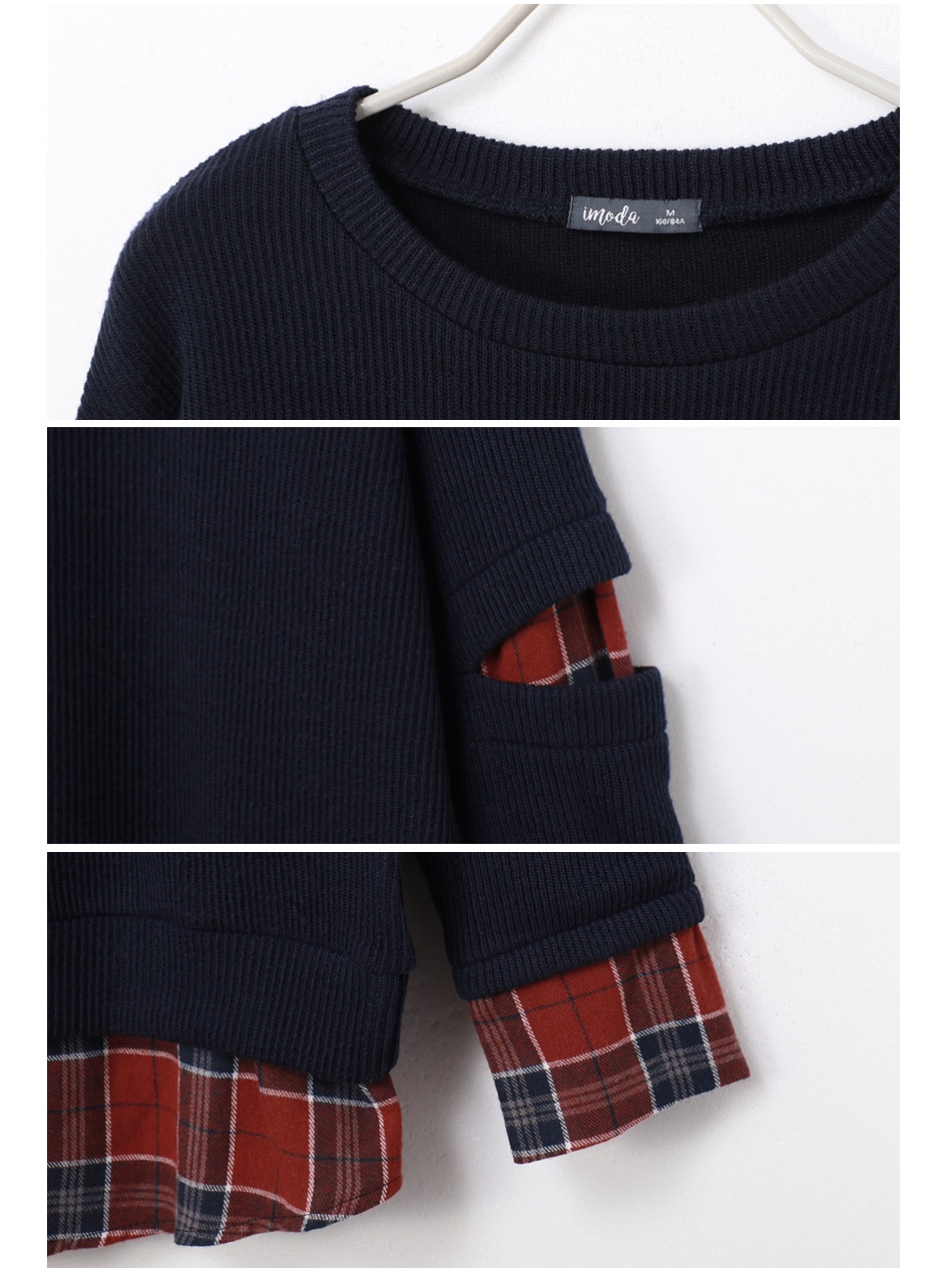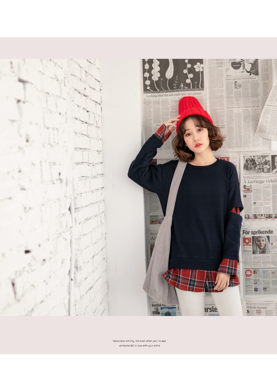 OB嚴選 假兩件針織異材質拼接格紋割破袖上衣 《AB8680》大尺碼/女裝/現貨