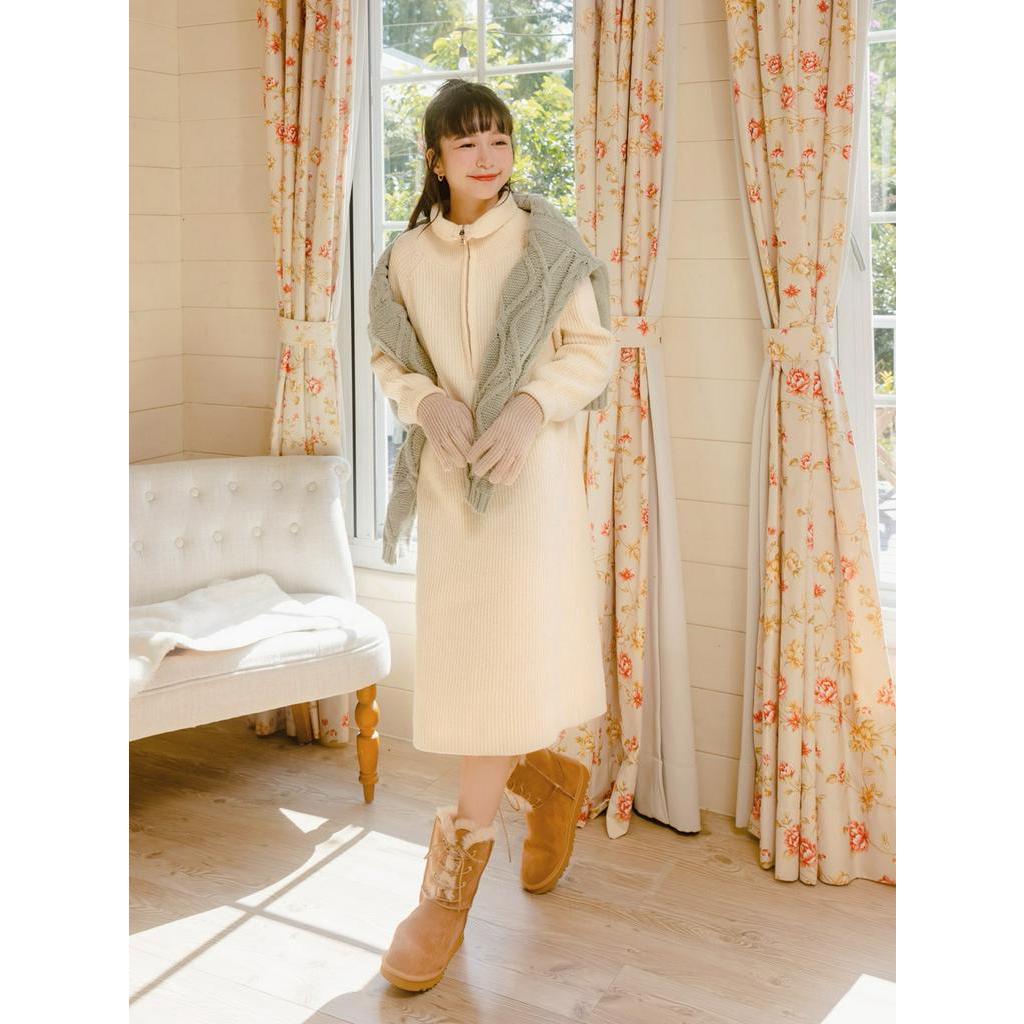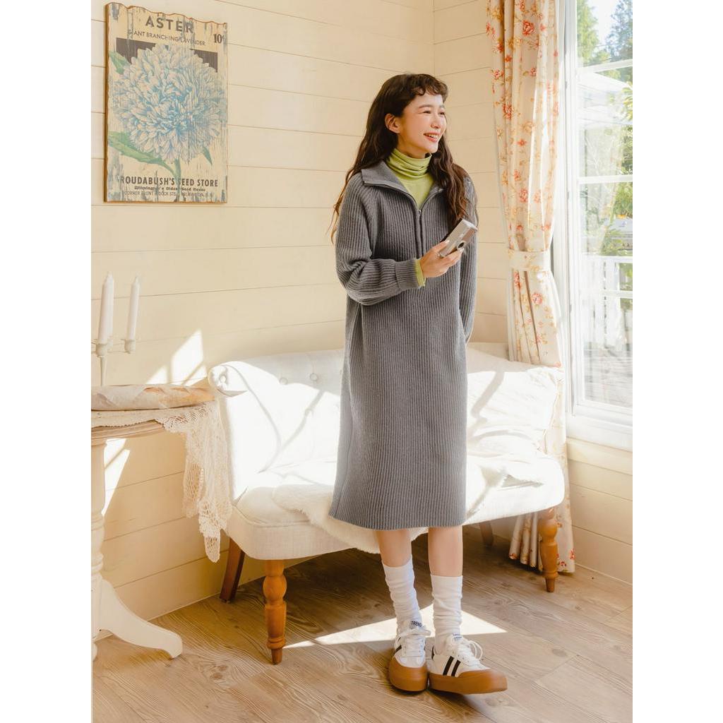 OB嚴選 高領坑條織紋拉鍊造型毛衣中洋裝 《FA2640》大尺碼/女裝/現貨
