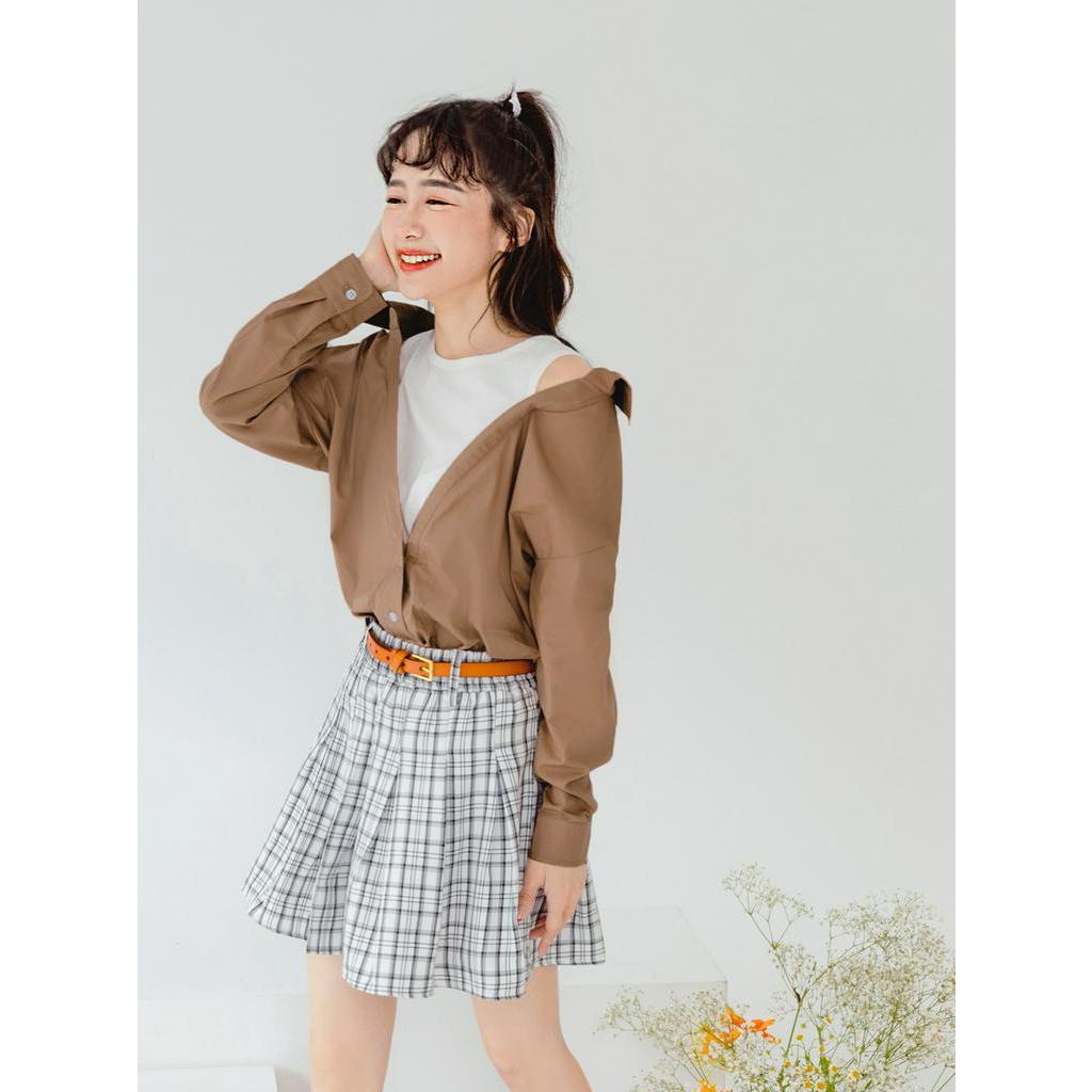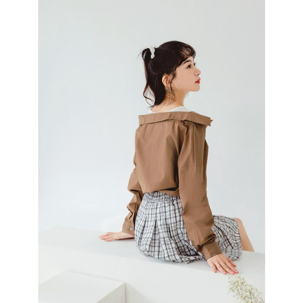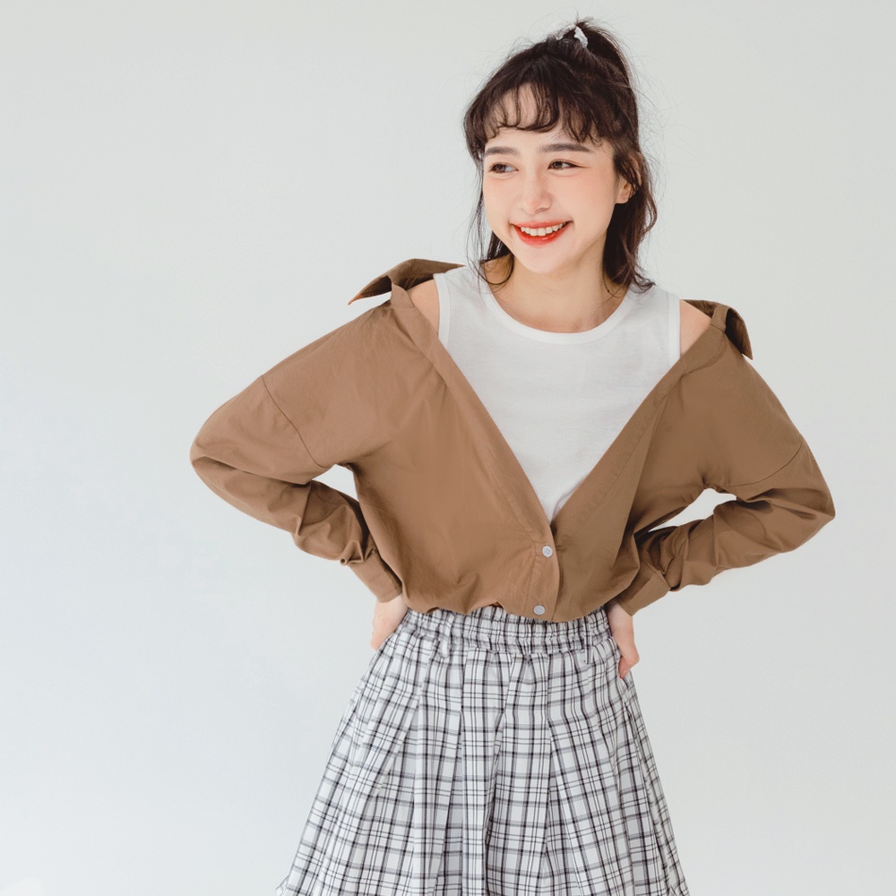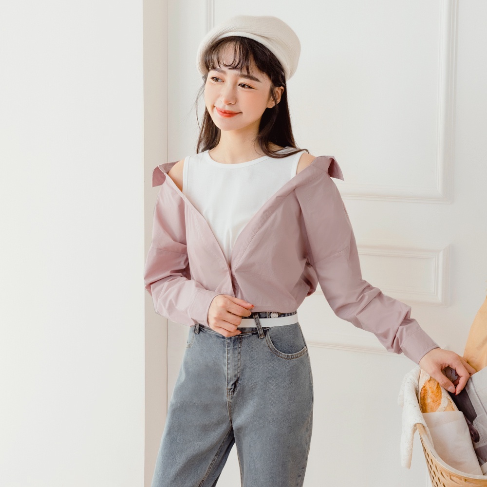 OB嚴選 高含棉假兩件小露肩造型襯衫/上衣 《AB17561》大尺碼/女裝/現貨