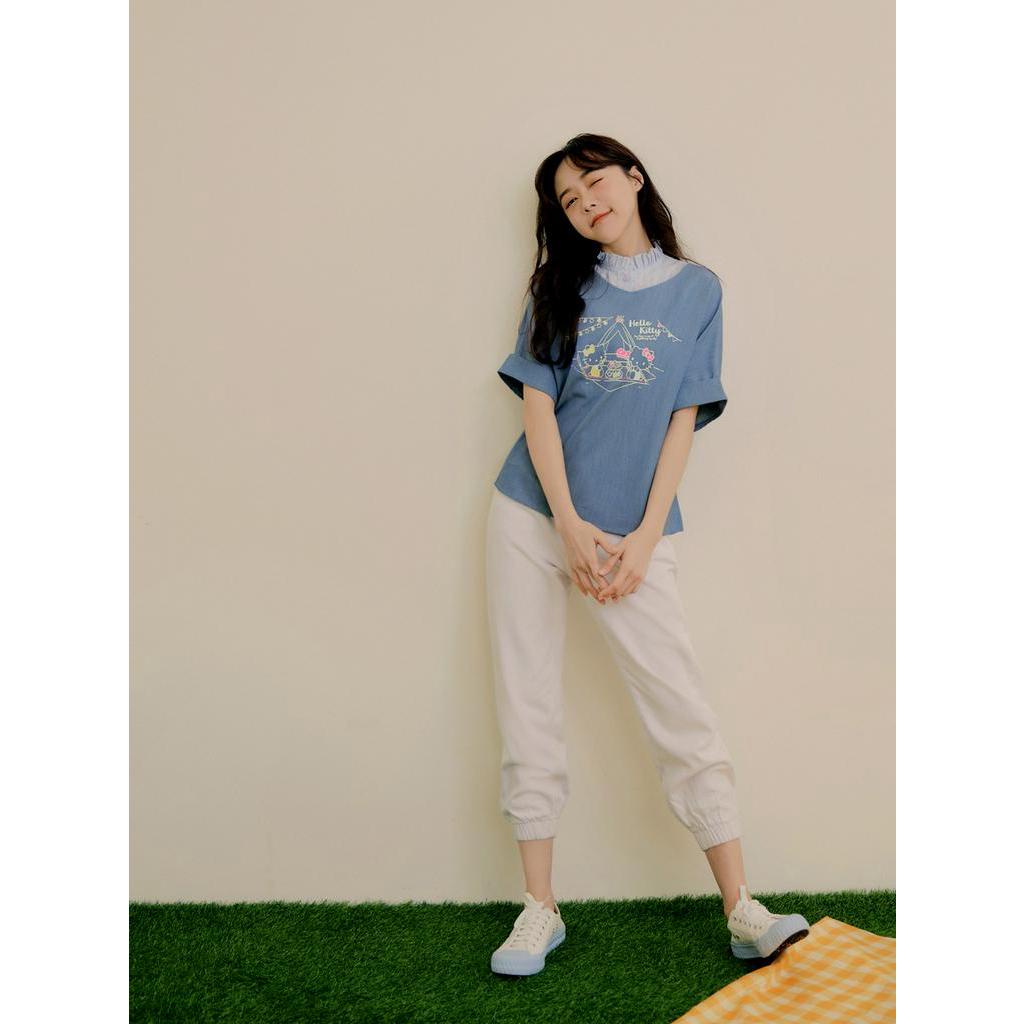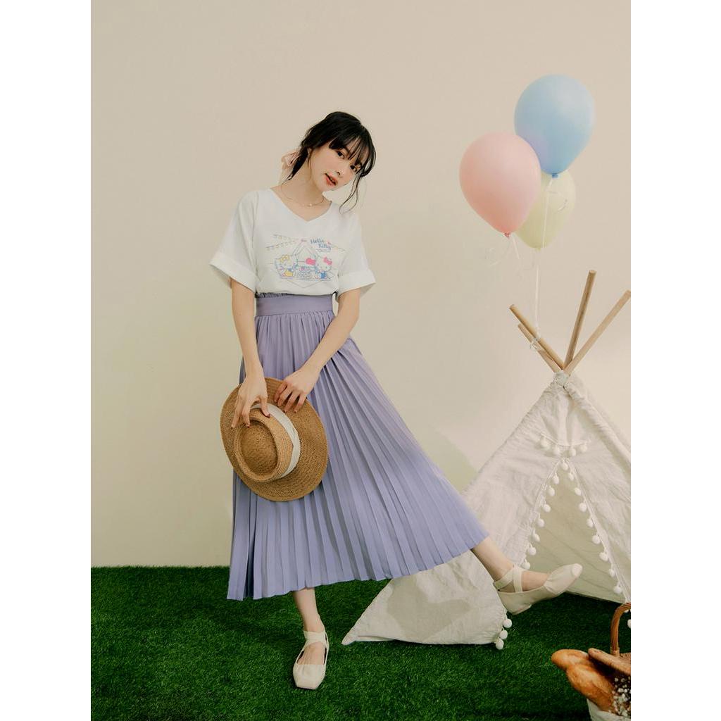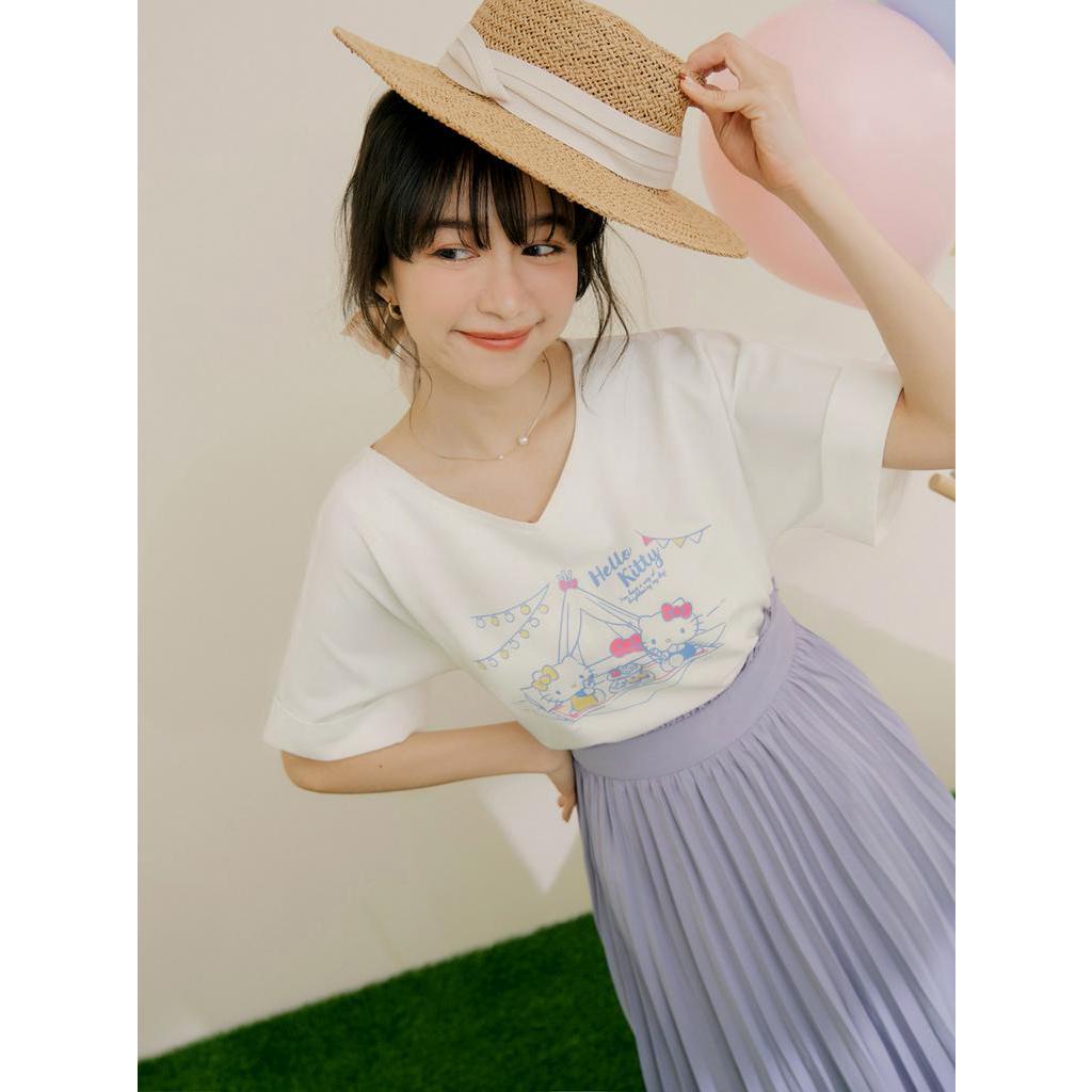 OB嚴選 KITTY 野餐系列.全彩印花V領反摺袖上衣 《KB1458》大尺碼/女裝/現貨