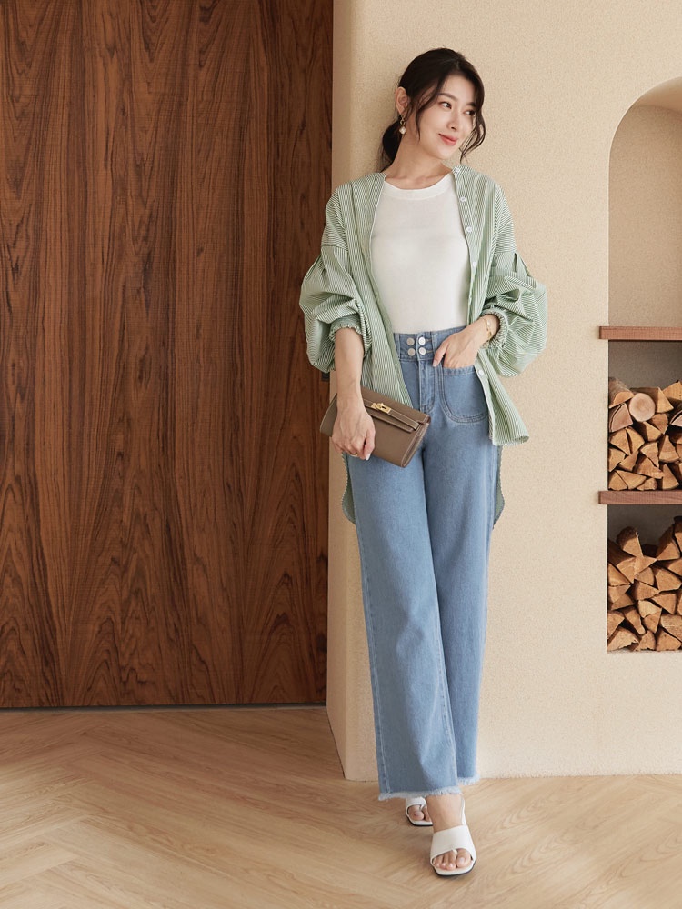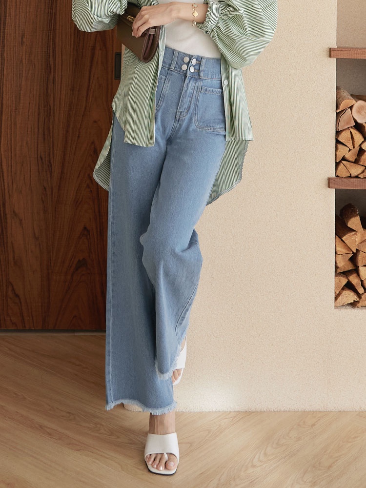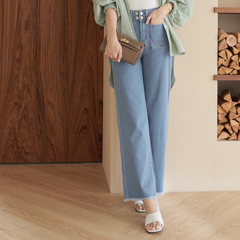 OB嚴選 腰圍可調節下襬抽鬚直筒牛仔褲 《BA7283》大尺碼/女裝/現貨