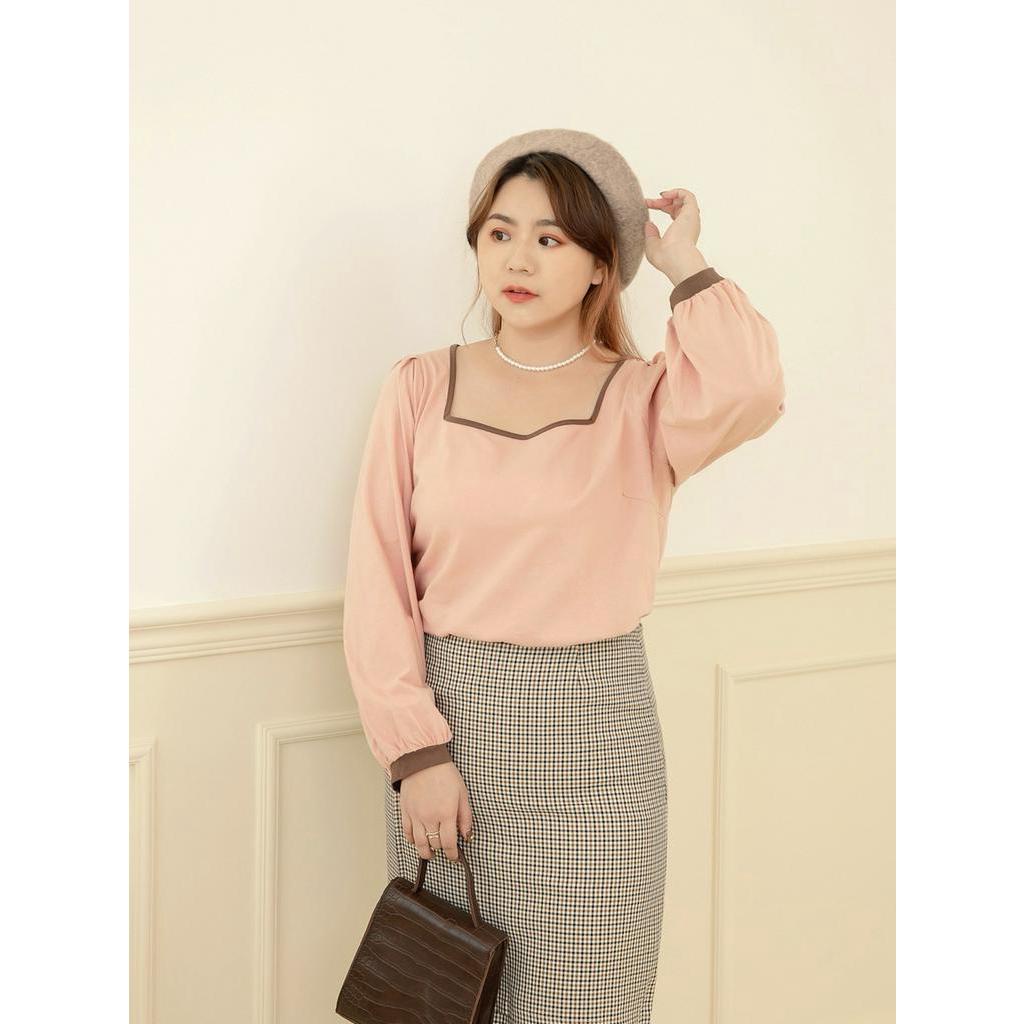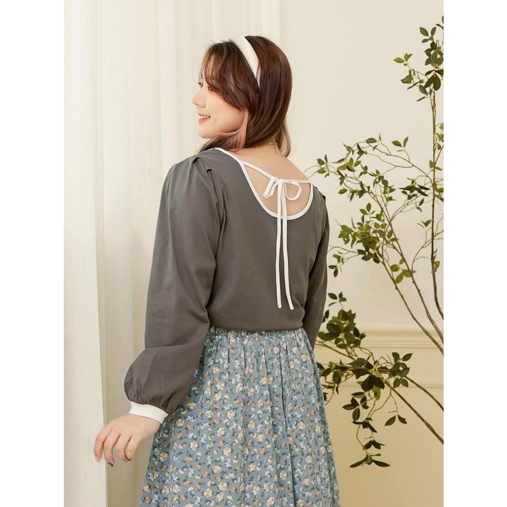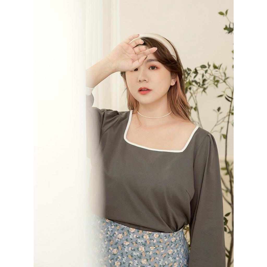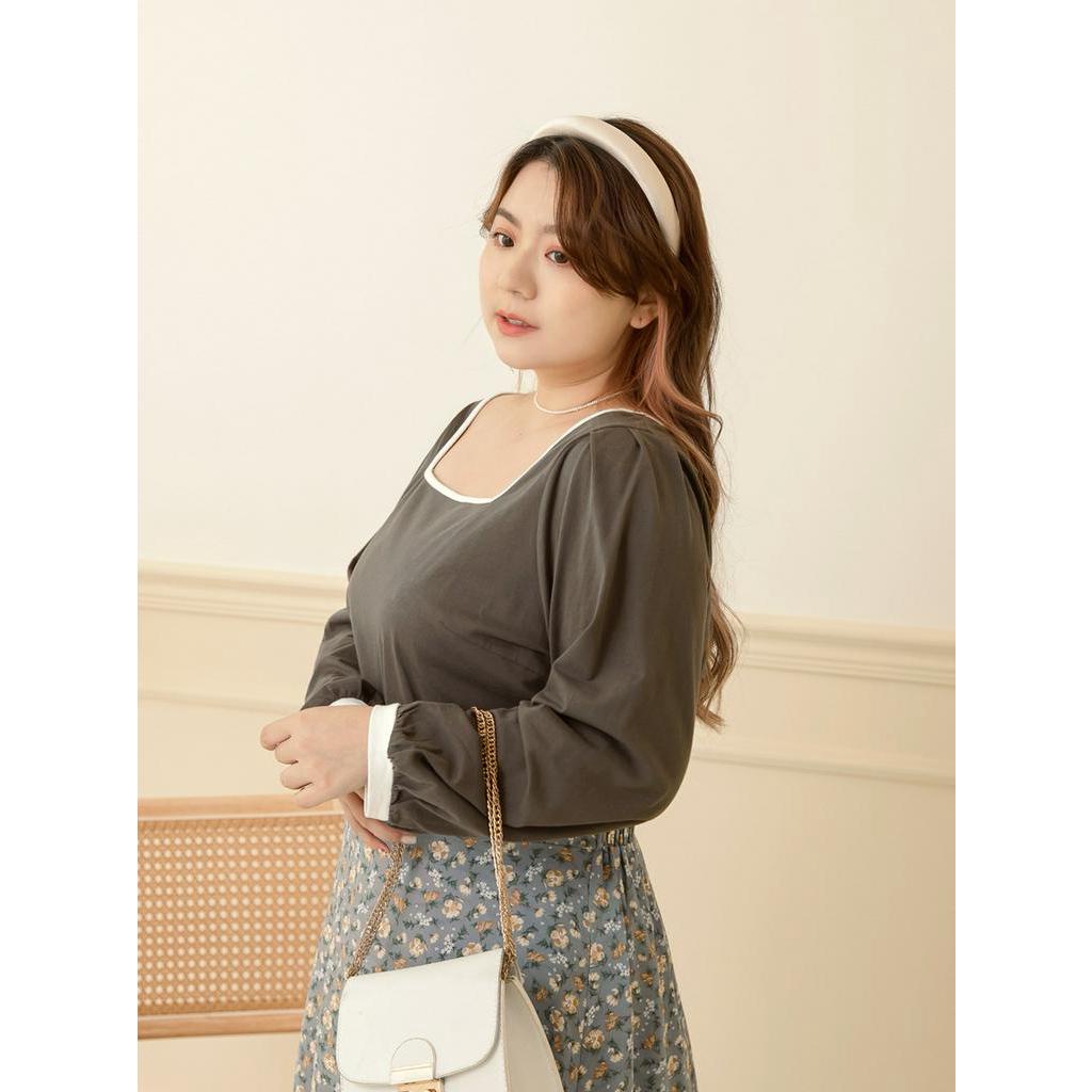 OB嚴選 雲朵自訂款-小V臉.方領高含棉亮眼滾邊美背拋袖上衣 《AB17614》大尺碼/女裝/現貨
