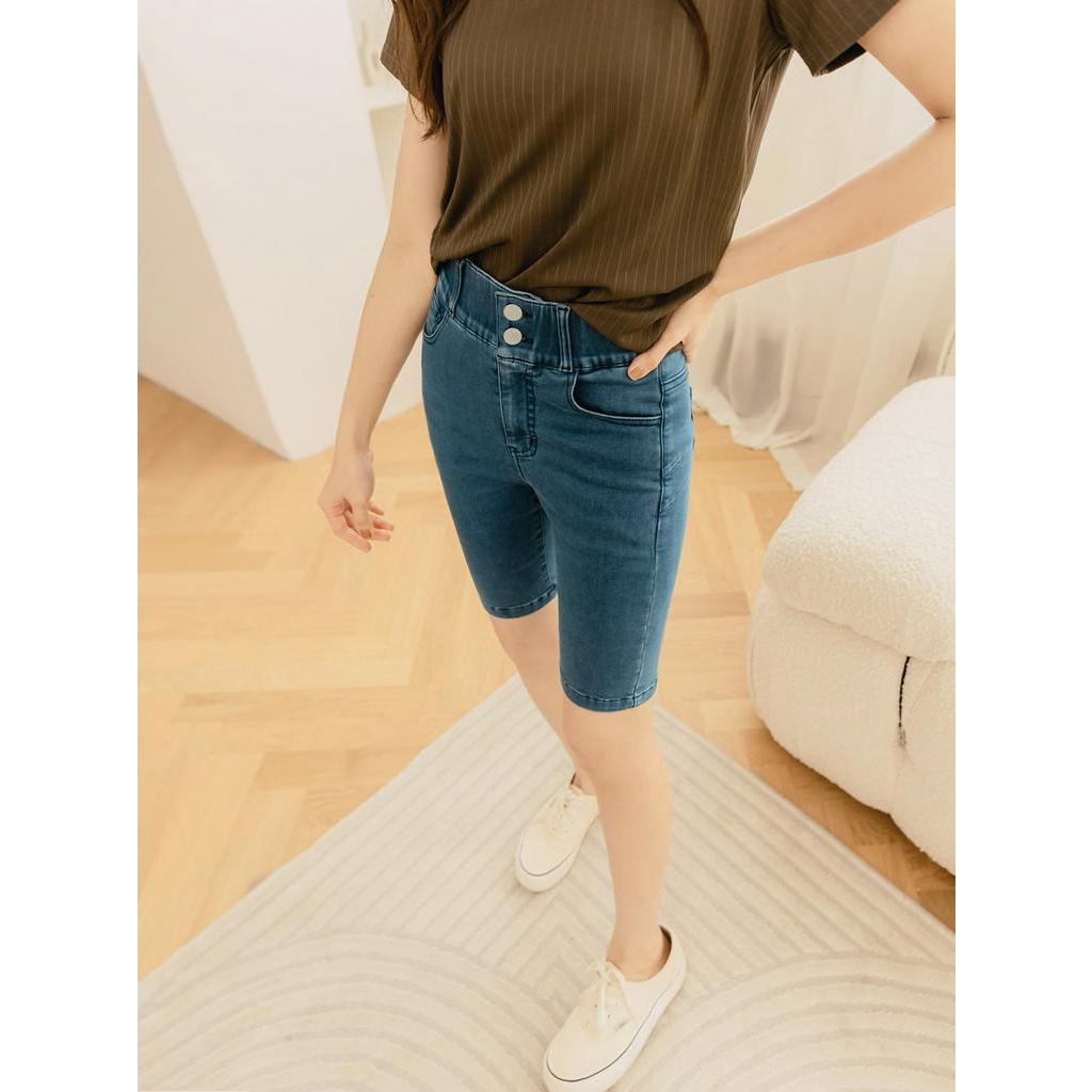 OB嚴選 S小腰精.高腰鬆緊棉質牛仔單車褲 《BA6942》大尺碼/女裝/現貨