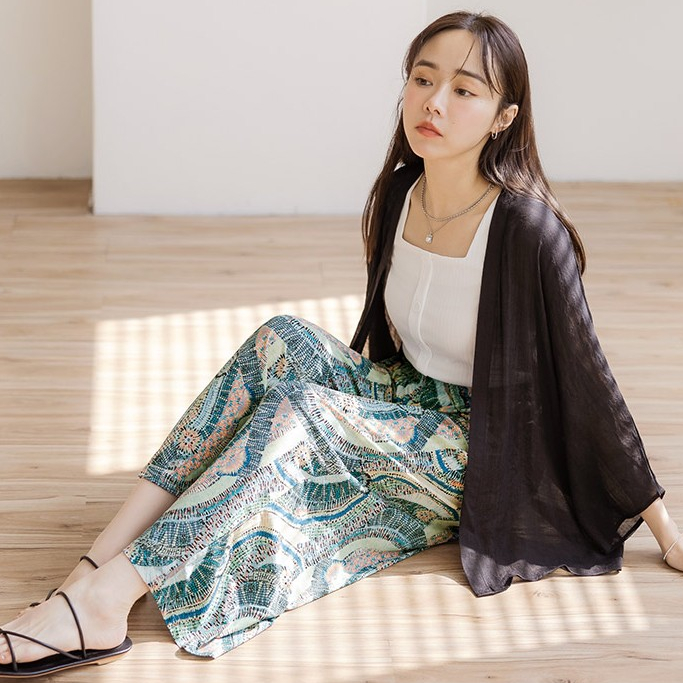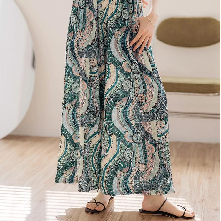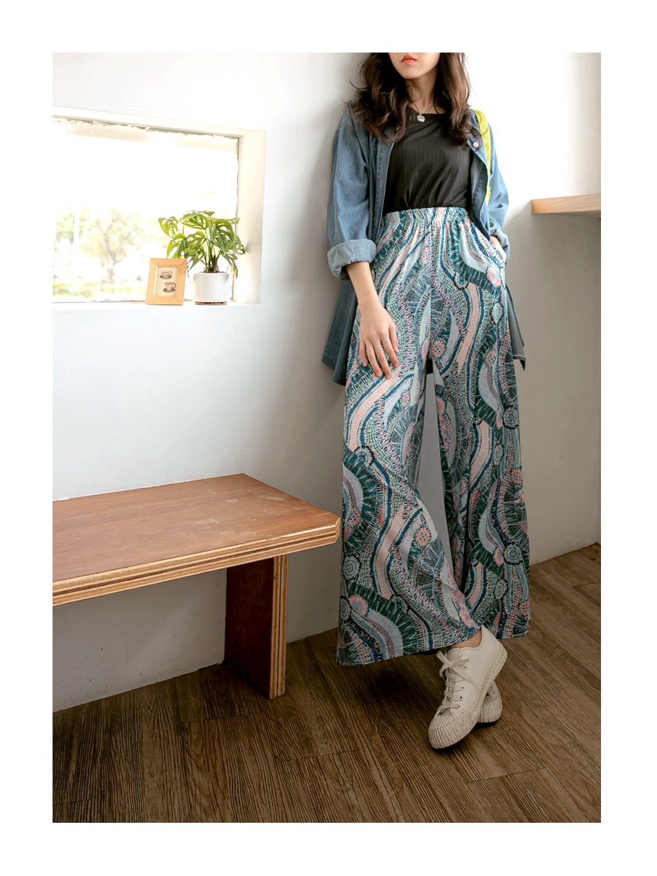 OB嚴選 涼感冰箱空氣紗印花腰鬆緊落地寬褲 《BA6144》大尺碼/女裝/現貨