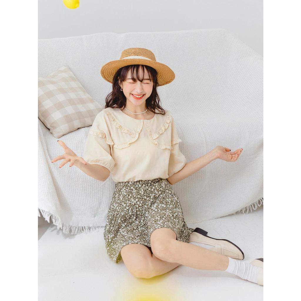 OB嚴選 純棉立體紋理荷葉拋袖上衣 《AB18333》大尺碼/女裝/現貨