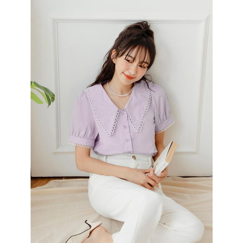 OB嚴選 小V臉.造型尖領純棉襯衫上衣 《AB18692》大尺碼/女裝/現貨