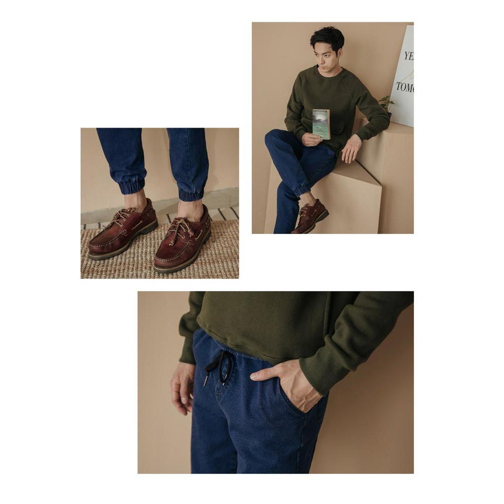 OB嚴選 素色全鬆緊腰頭抽繩設計磨毛牛仔長褲 《KL0768》大尺碼/男裝/現貨