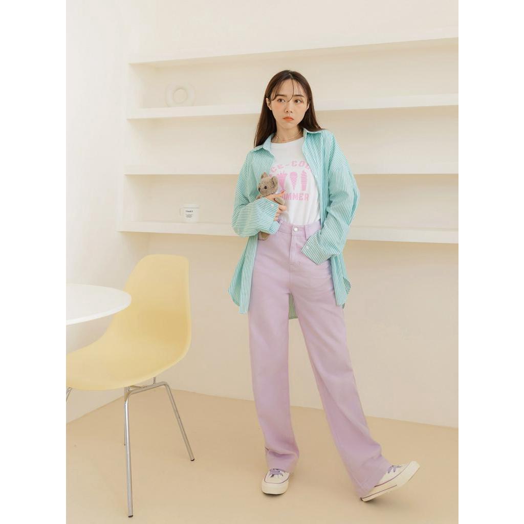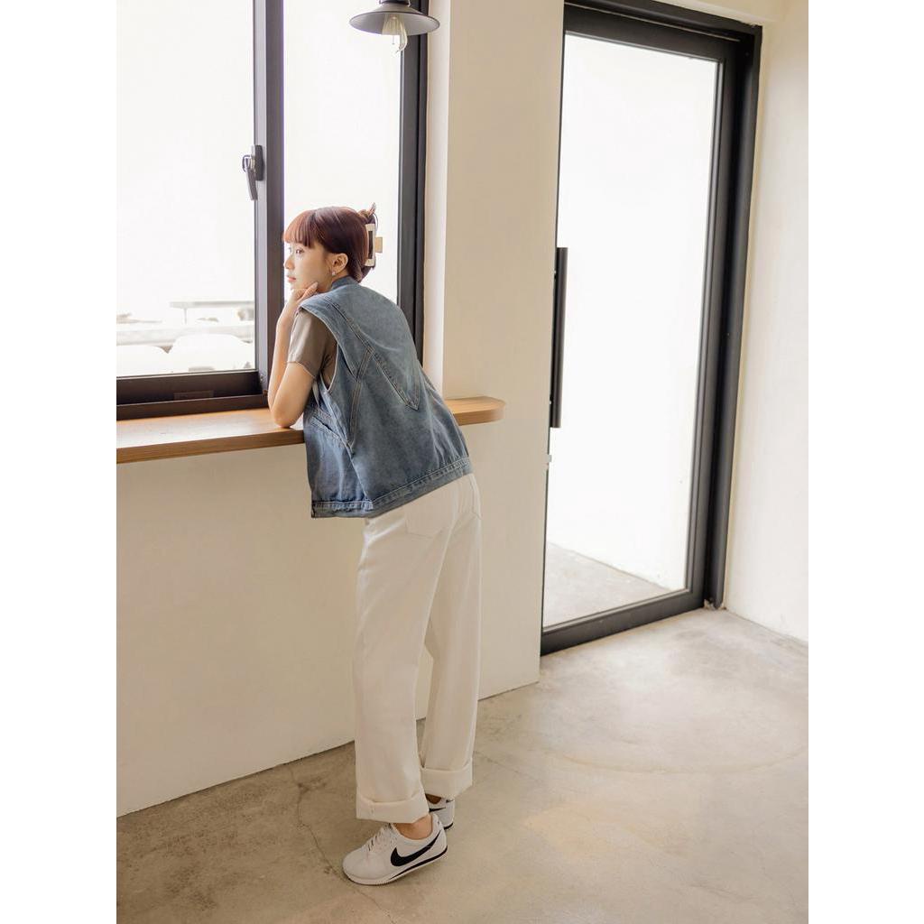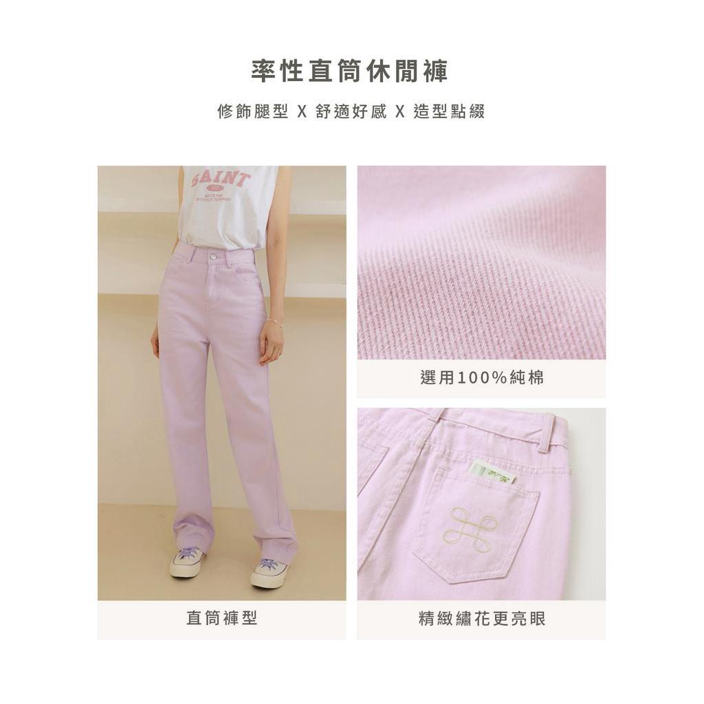 OB嚴選 純棉粗斜紋口袋繡花落地直筒長褲 《BA7046》大尺碼/現貨/女裝