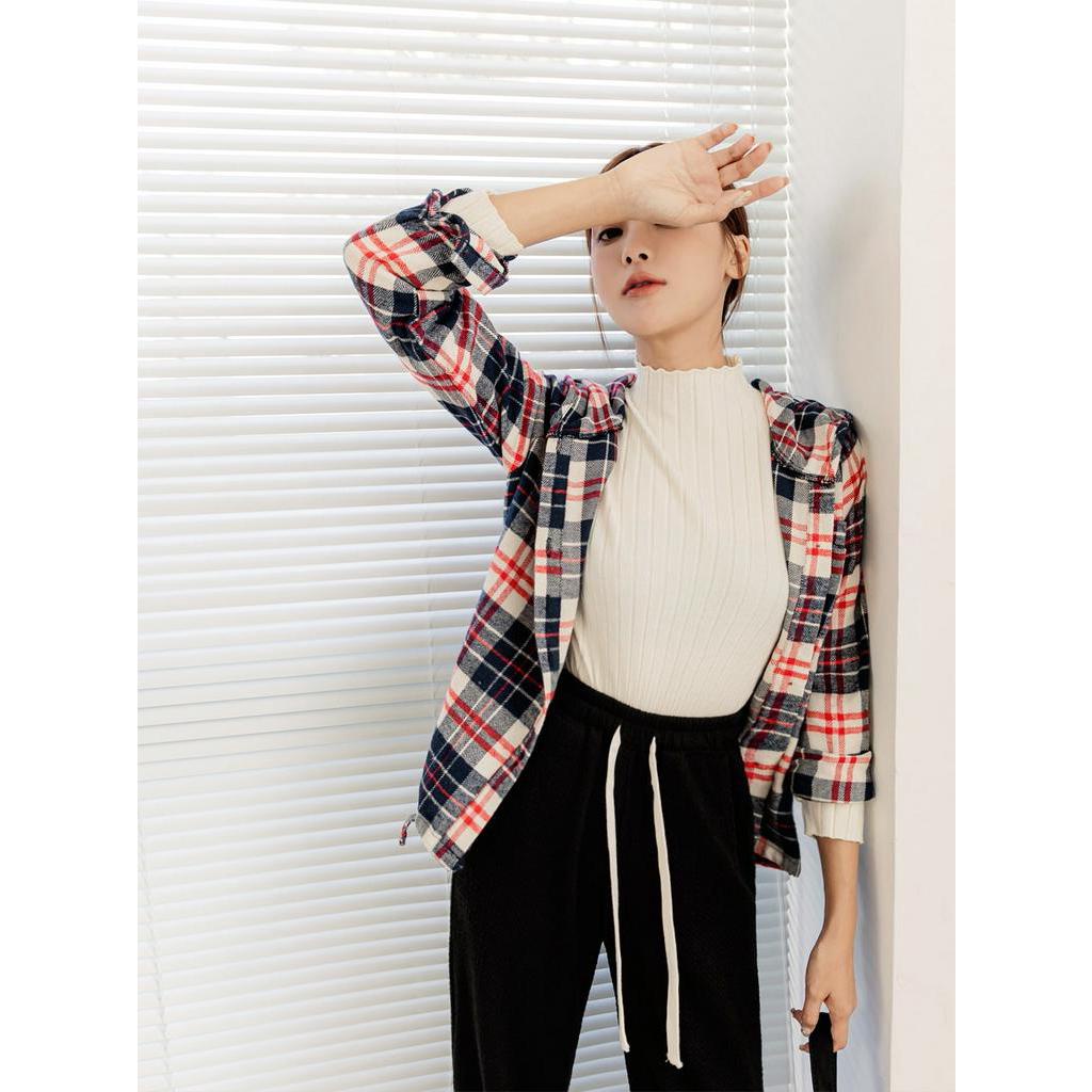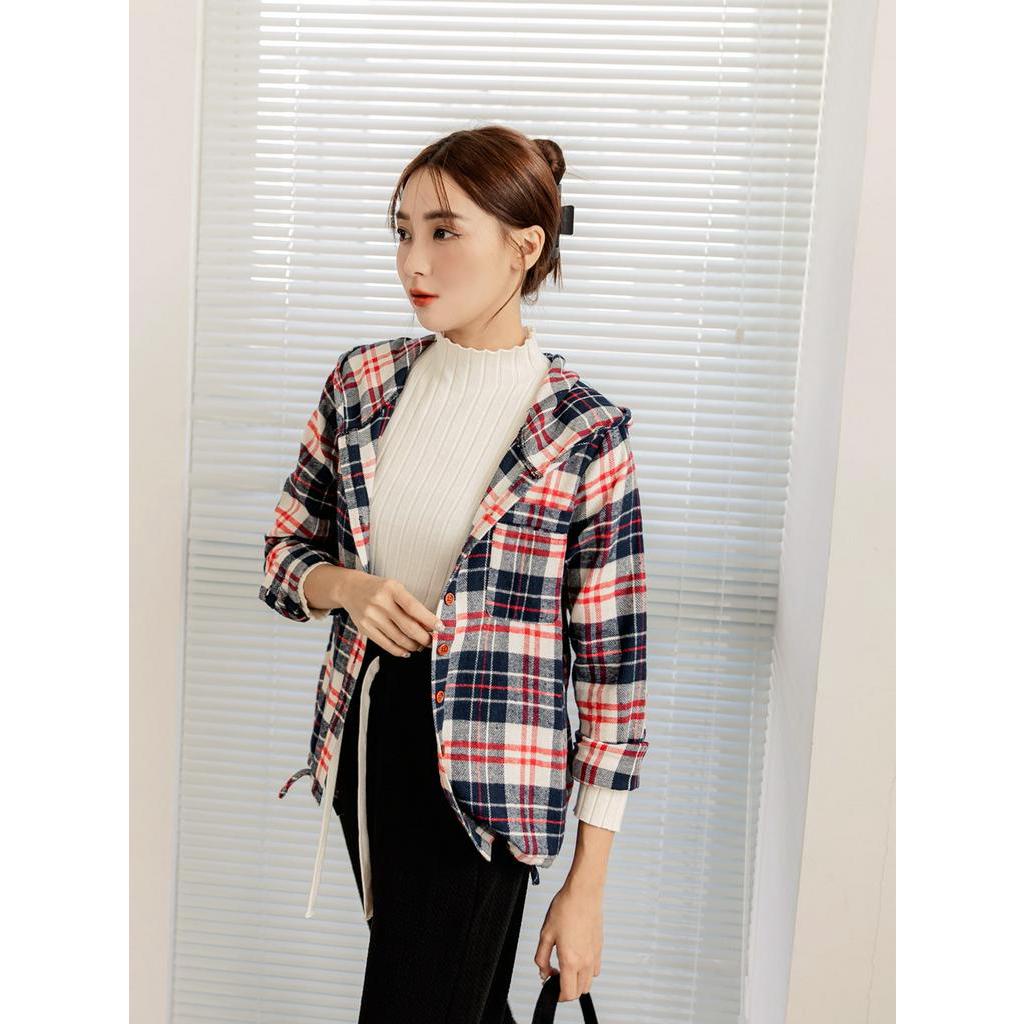 OB嚴選 經典格紋磨毛抽繩連帽襯衫上衣 《AB17732》大尺碼/現貨/女裝
