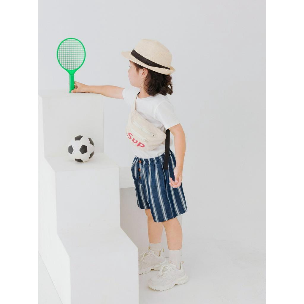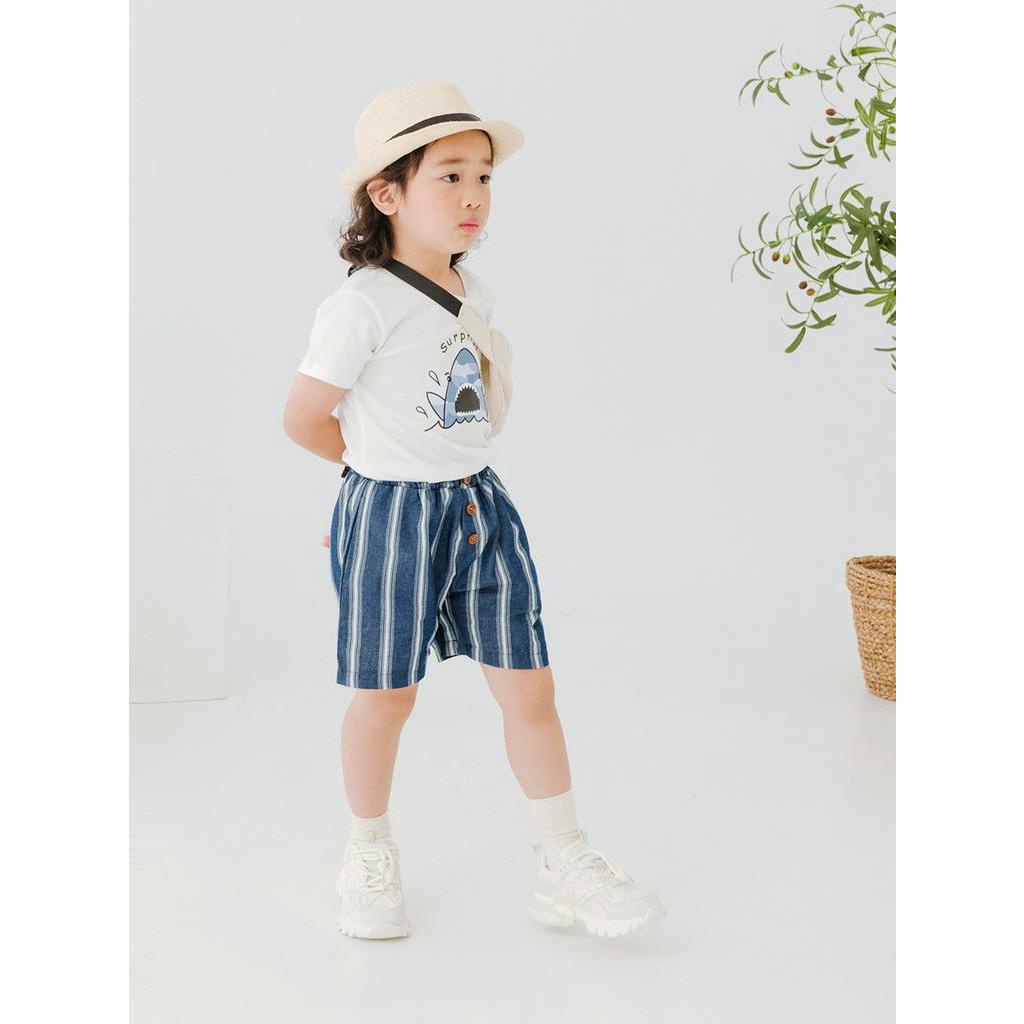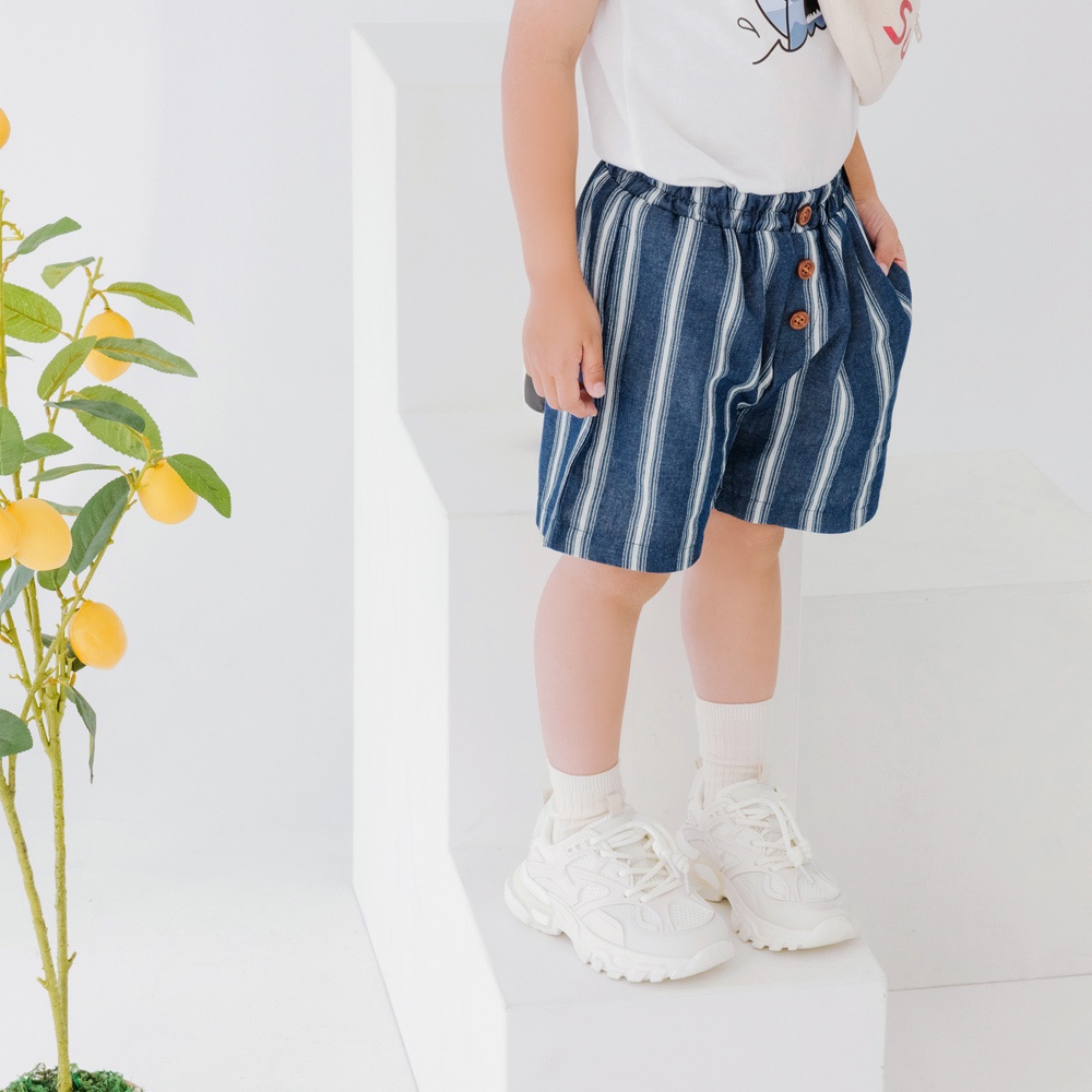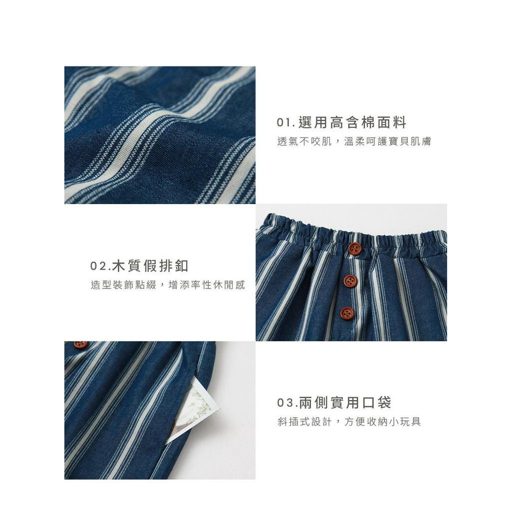 OB嚴選 日系木質裝飾排釦條紋五分短褲 《QA1423》童裝/現貨