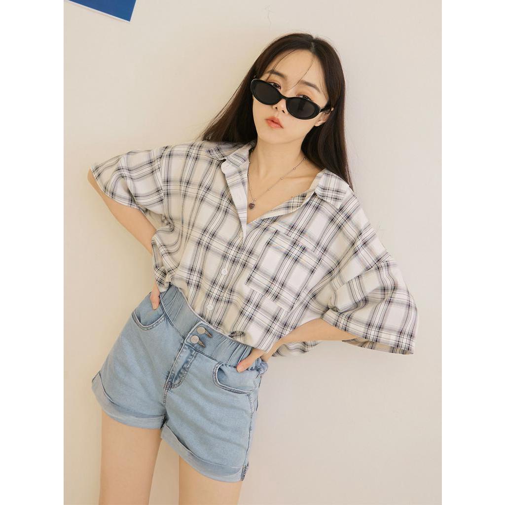 OB嚴選 棉質雪花刷色寬版鬆緊腰牛仔短褲 《BA7214》大尺碼/現貨/女裝
