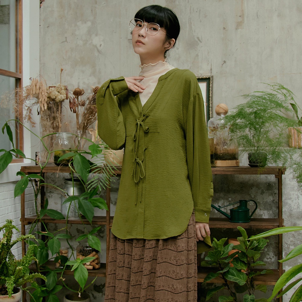 OB嚴選 寬鬆V領綁帶造型前短後長側開衩圓弧下擺上衣 《AB18850》日系/大尺碼/現貨/女裝