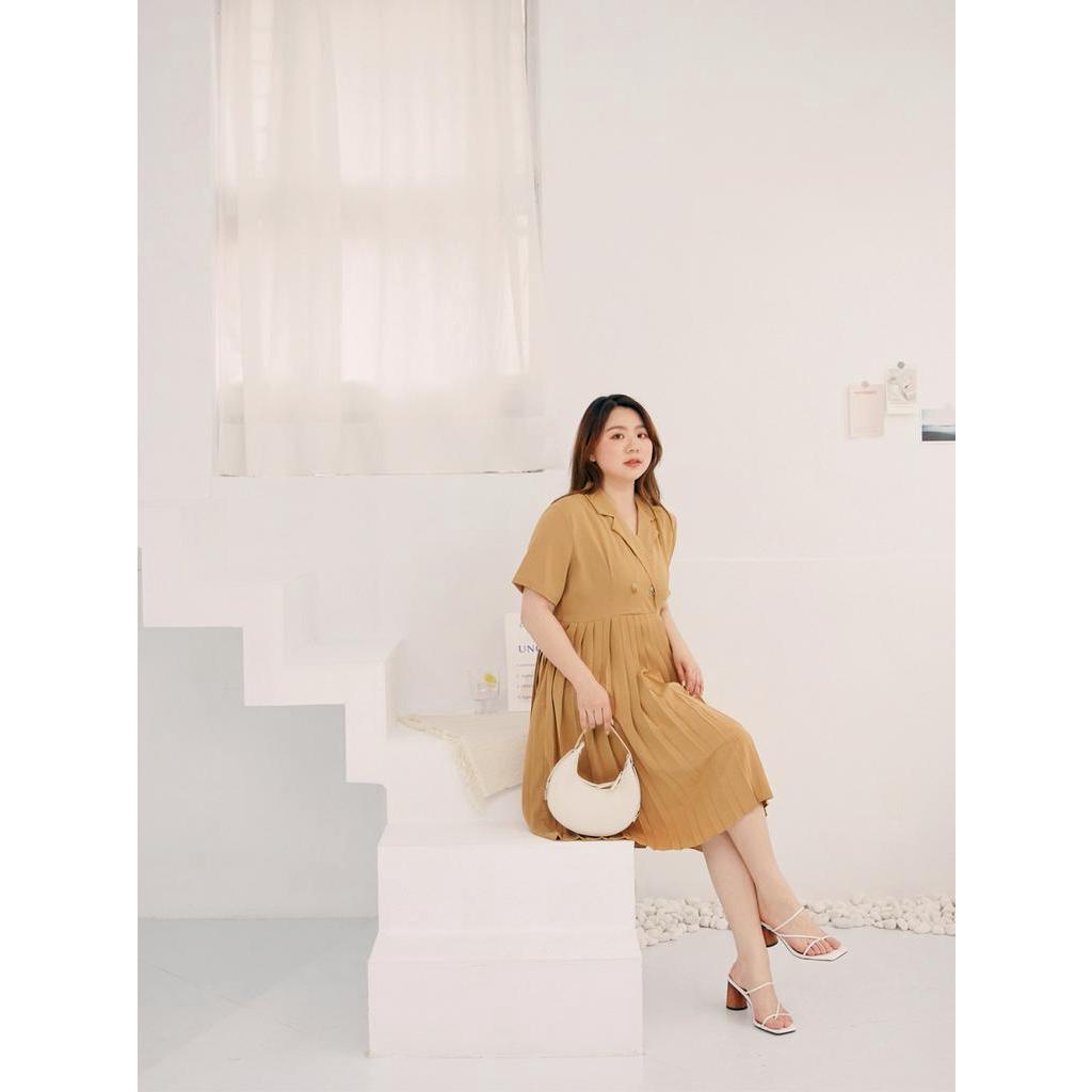 OB嚴選 雲朵自訂款-小V臉.V領雪紡雙排釦百褶洋裝 《DA9536》大尺碼/現貨/女裝