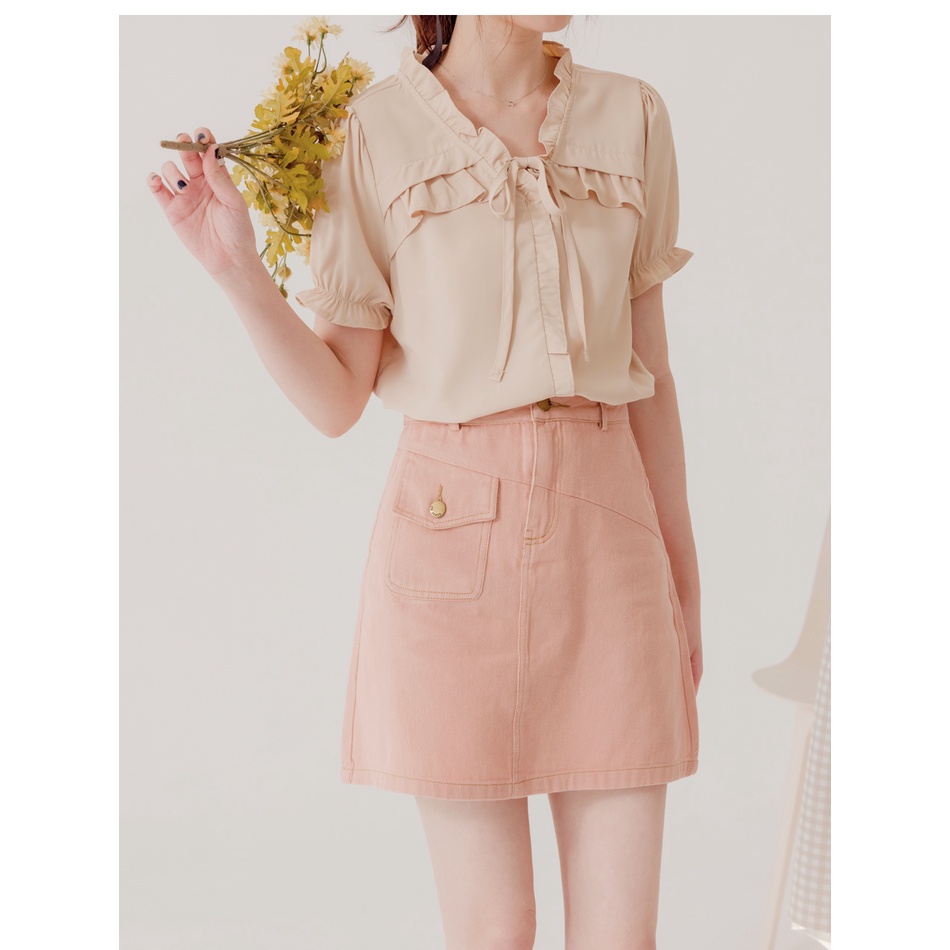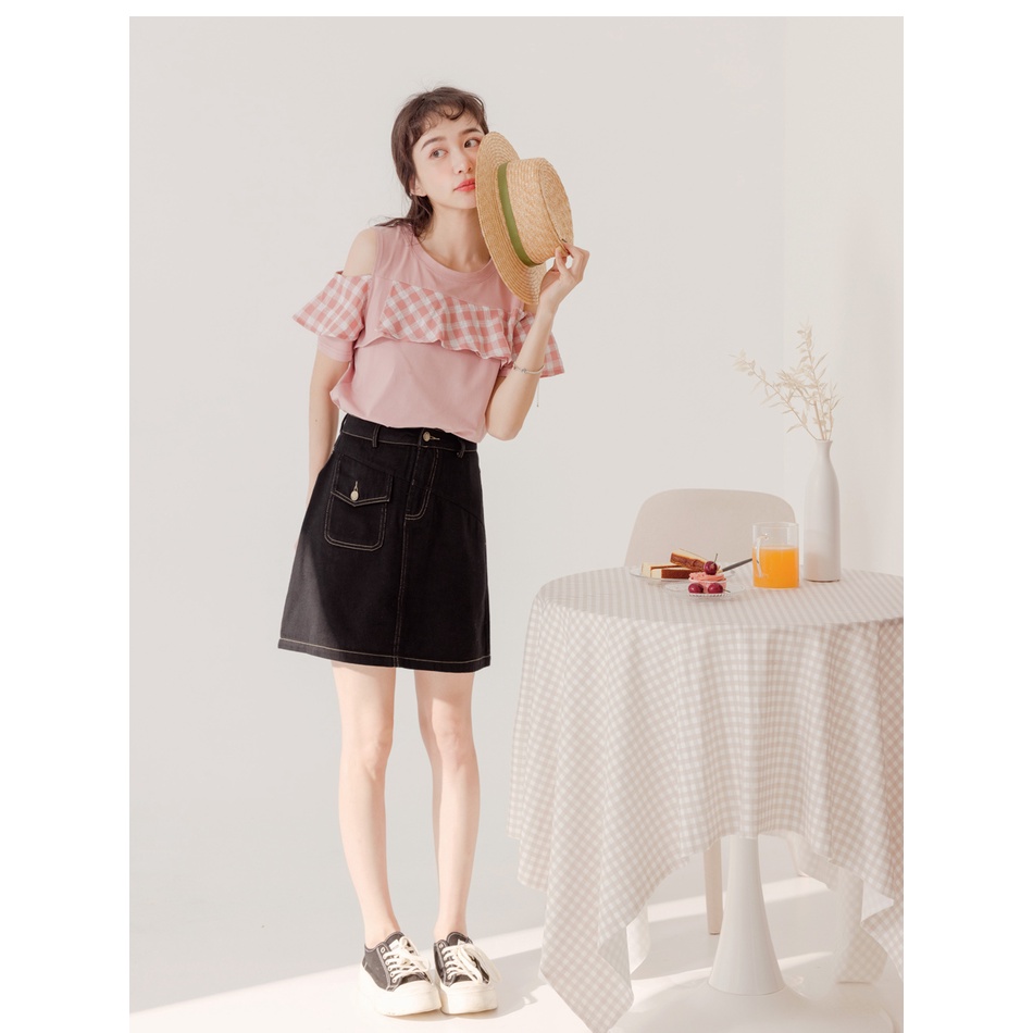 OB嚴選 高含棉不對稱車線口袋A字牛仔短裙 《CA2576》大尺碼/現貨/女裝