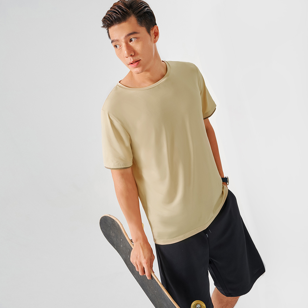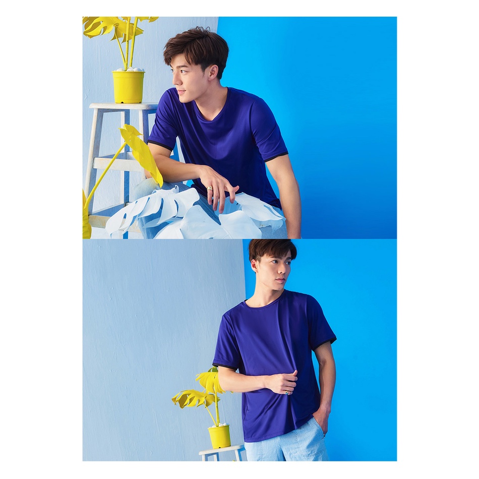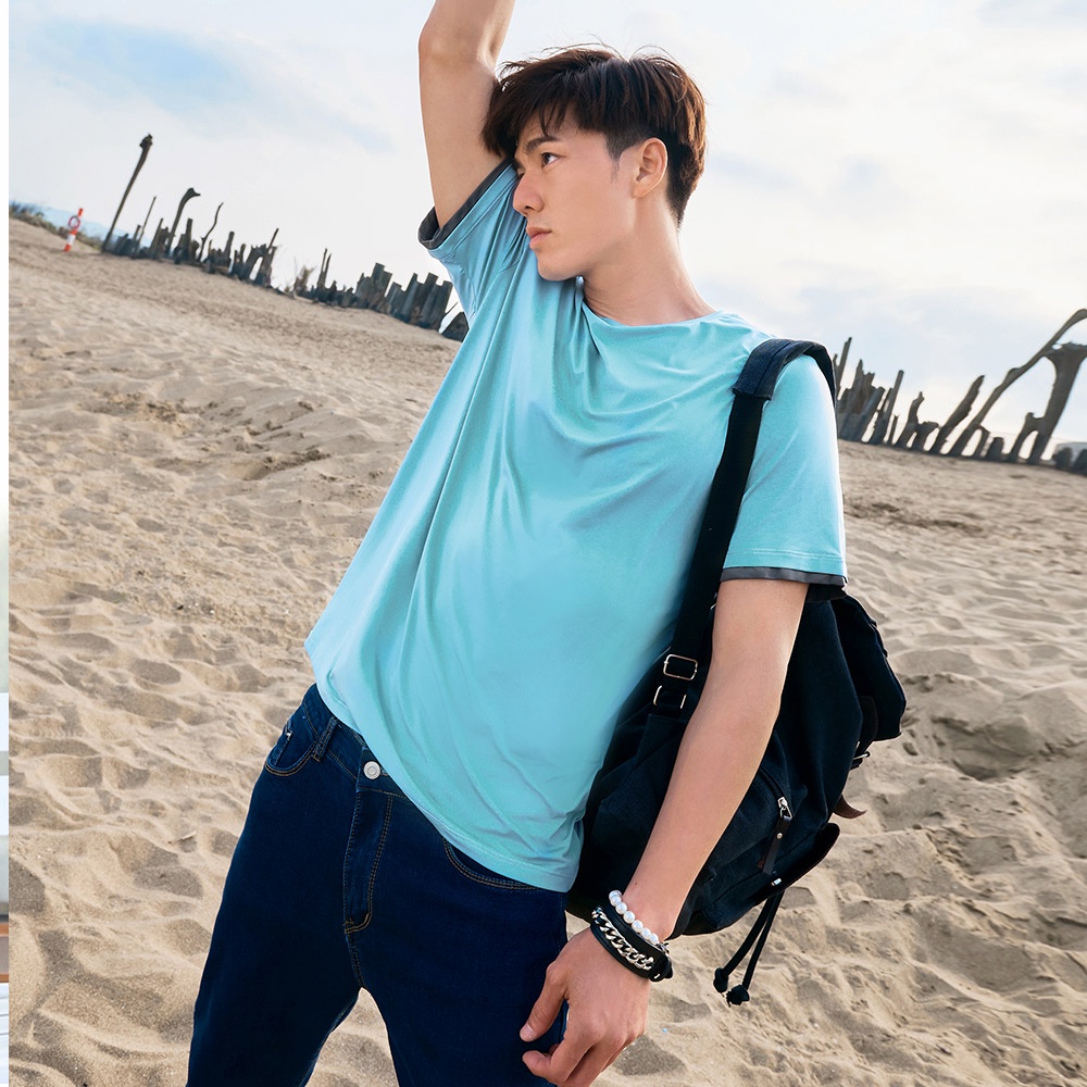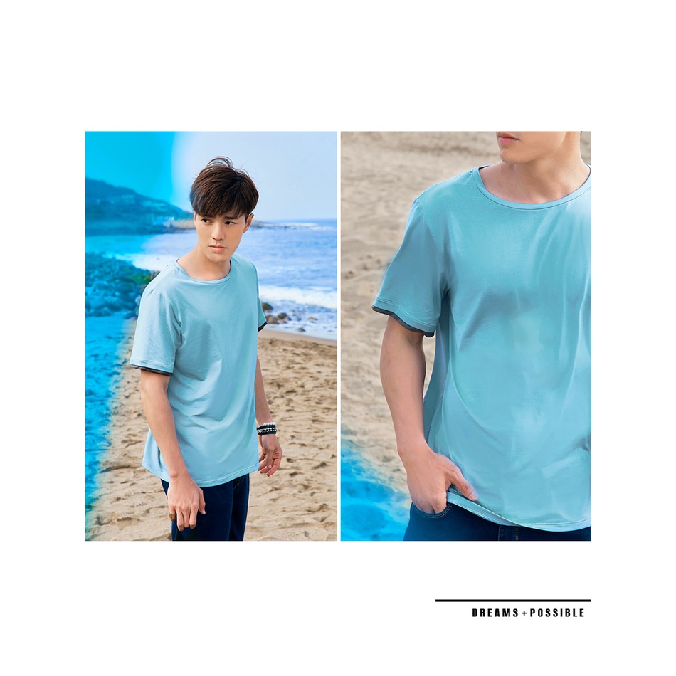 OB嚴選 涼感.冰咖啡紗圓領袖口撞色拼接短袖上衣《KL1067》男裝/現貨/大尺碼