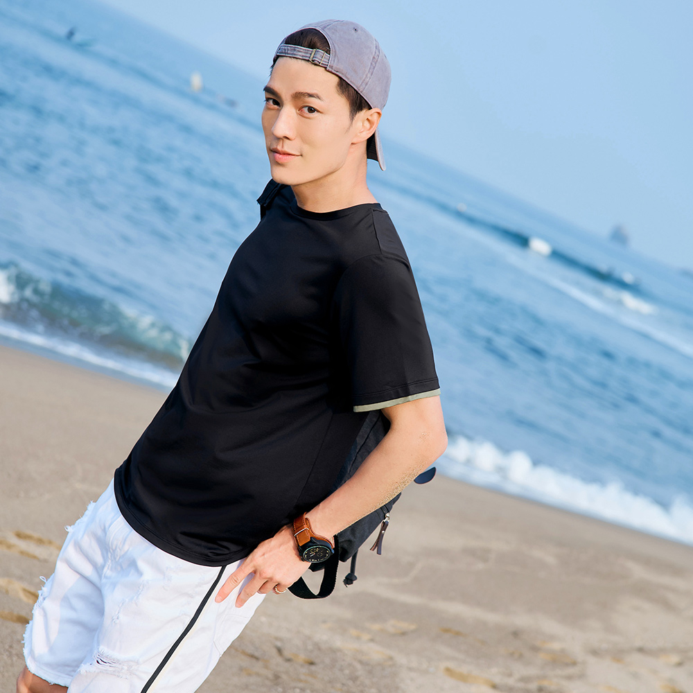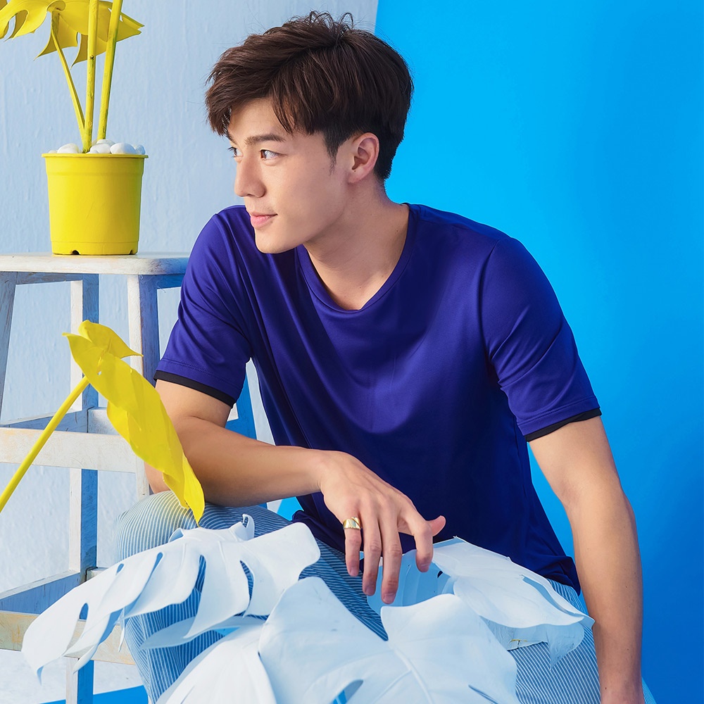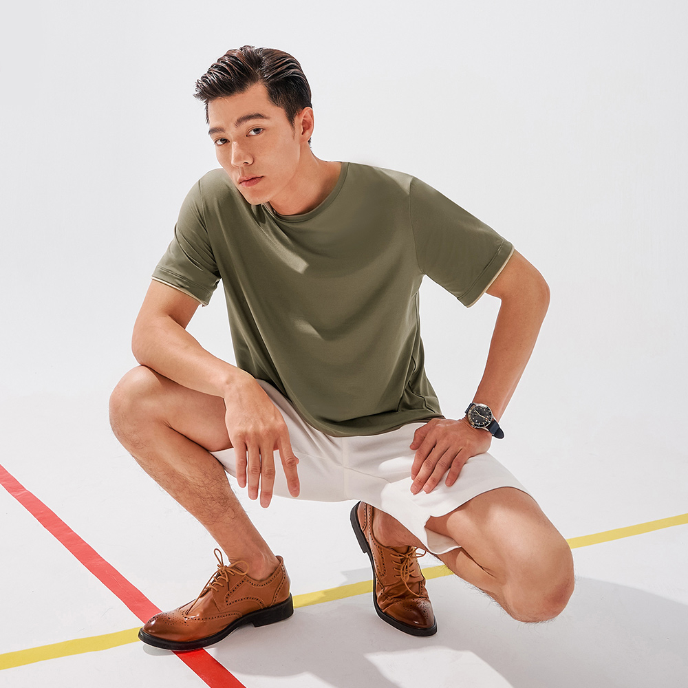 OB嚴選 涼感.冰咖啡紗圓領袖口撞色拼接短袖上衣《KL1067》男裝/現貨/大尺碼
