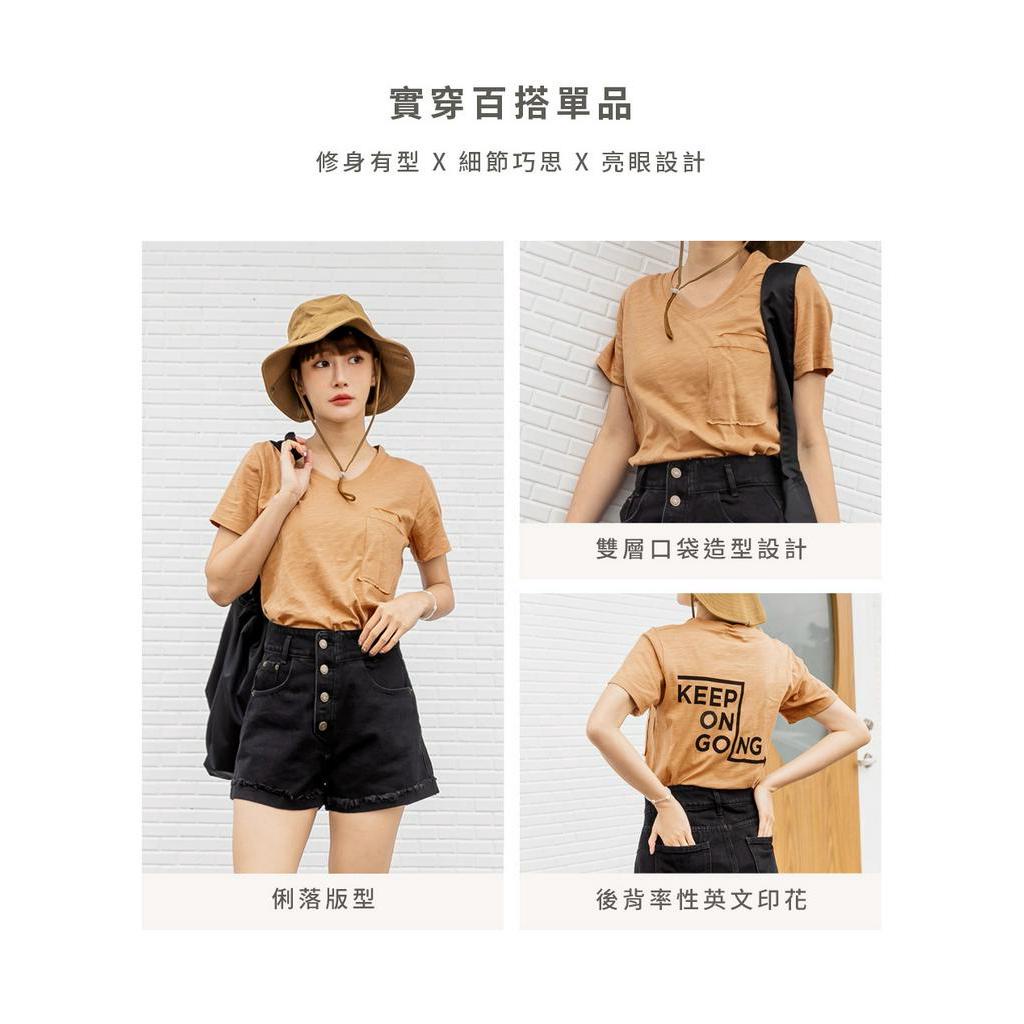 OB嚴選 純棉V領雙層口袋後背印花短袖上衣 《AB18567》大尺碼/現貨/女裝