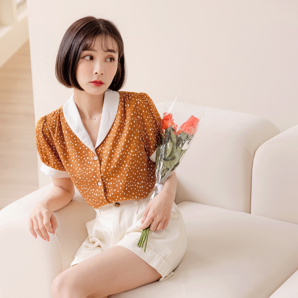 OB嚴選 涼感.舒涼雪紡小V臉印花上衣《AB17137》大尺碼/現貨/女裝
